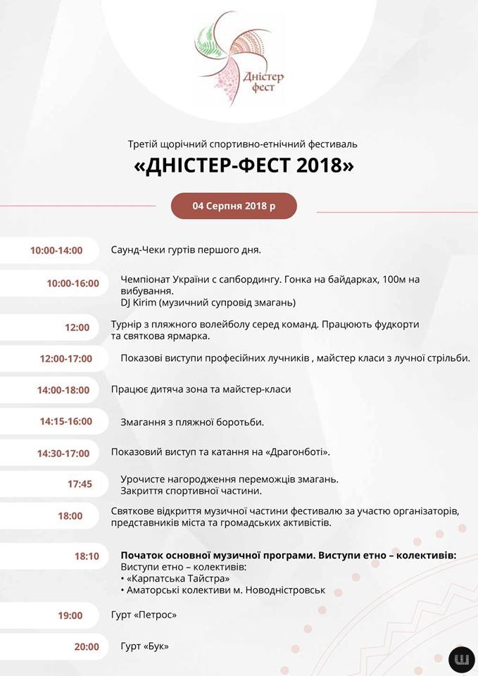 4-5 серпня у Новодністровську відбудеться щорічний спортивно-етнічний фестиваль «Дністер-фест». Про це на Fecebook-сторінці повідомляють організатори заходу.