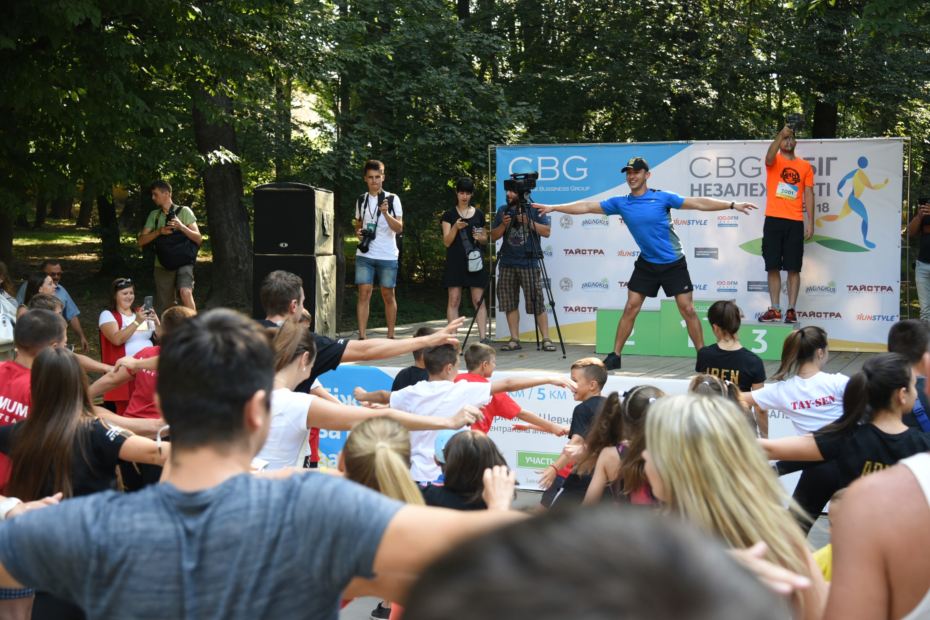 Перед забігом – розминка разом із тренером під музику. Позитивні емоції – не єдина нагорода за хороший результат.