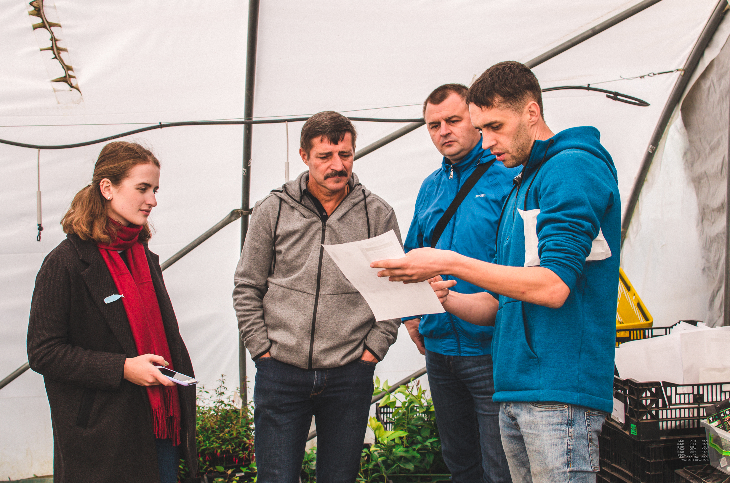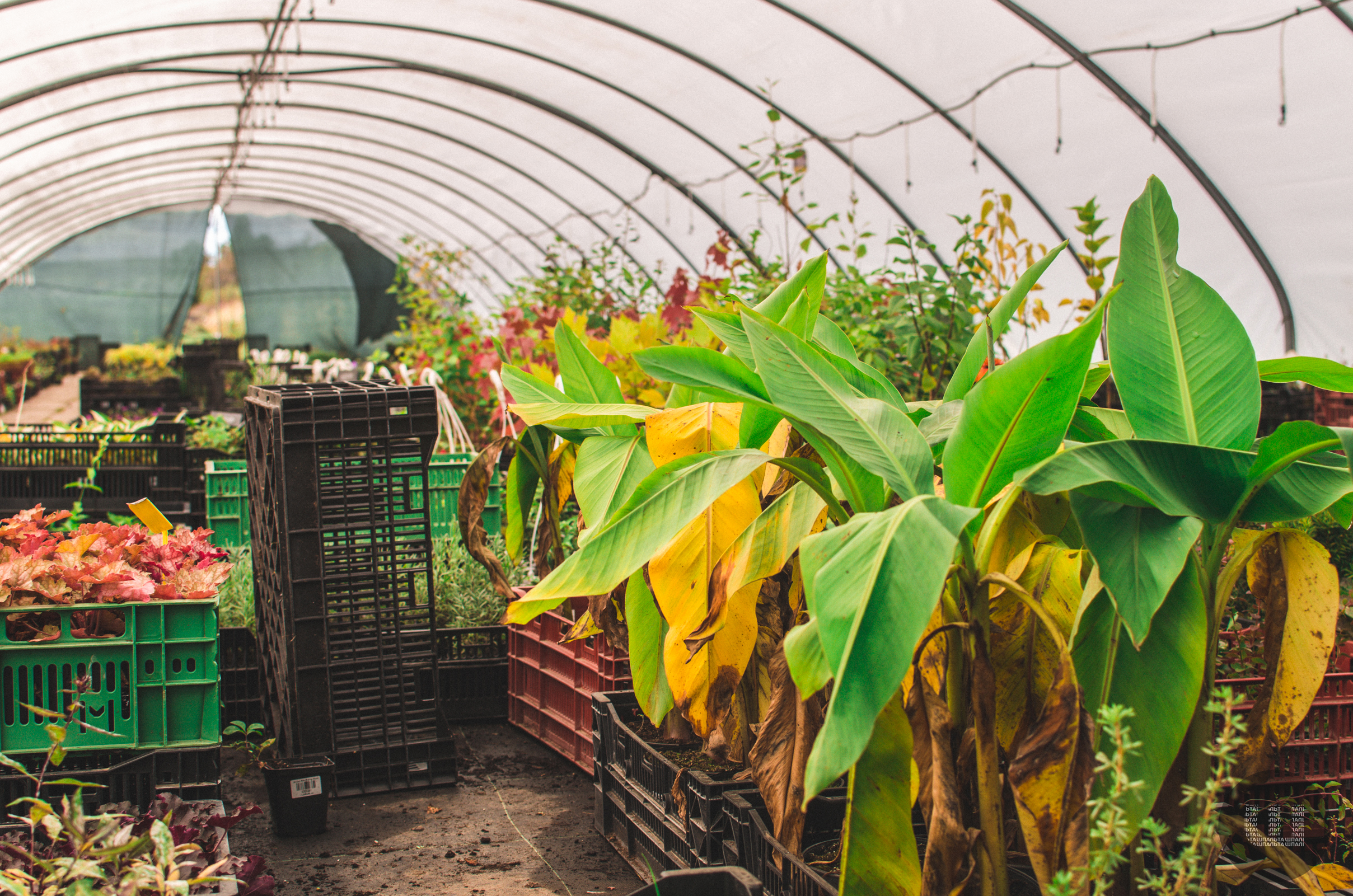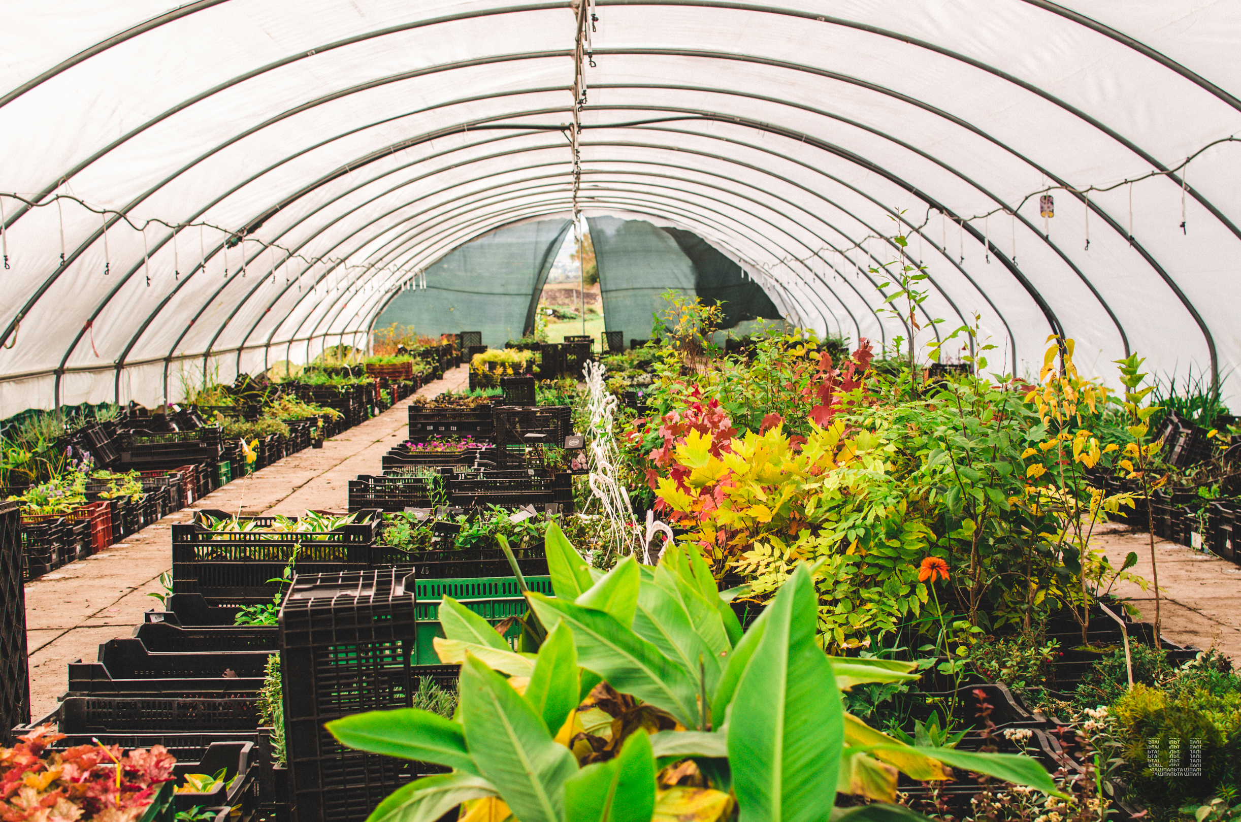 Заїжджаємо на територію, де вирощують багаторічні рослини та кущі, і відправляють замовлення. Спочатку йдемо в оранжереї, де окрім вирощування, відбувається й збір товару для відправлення.