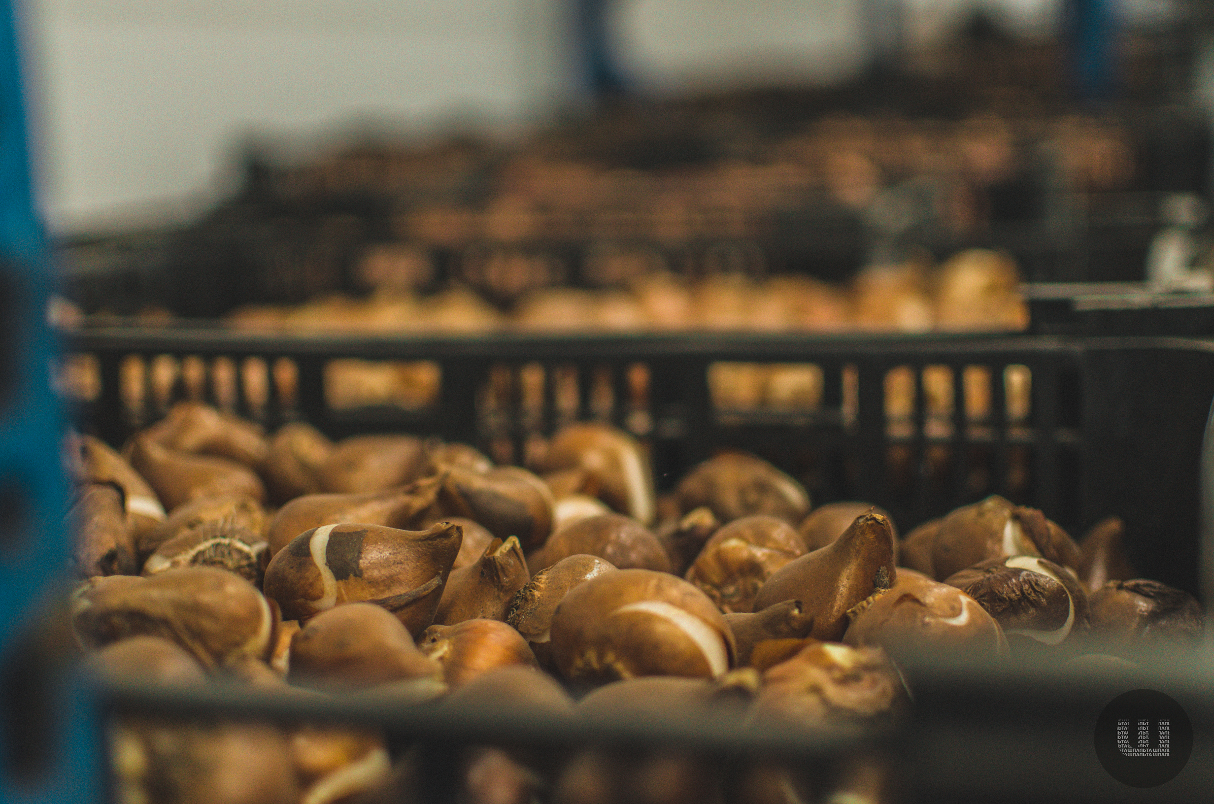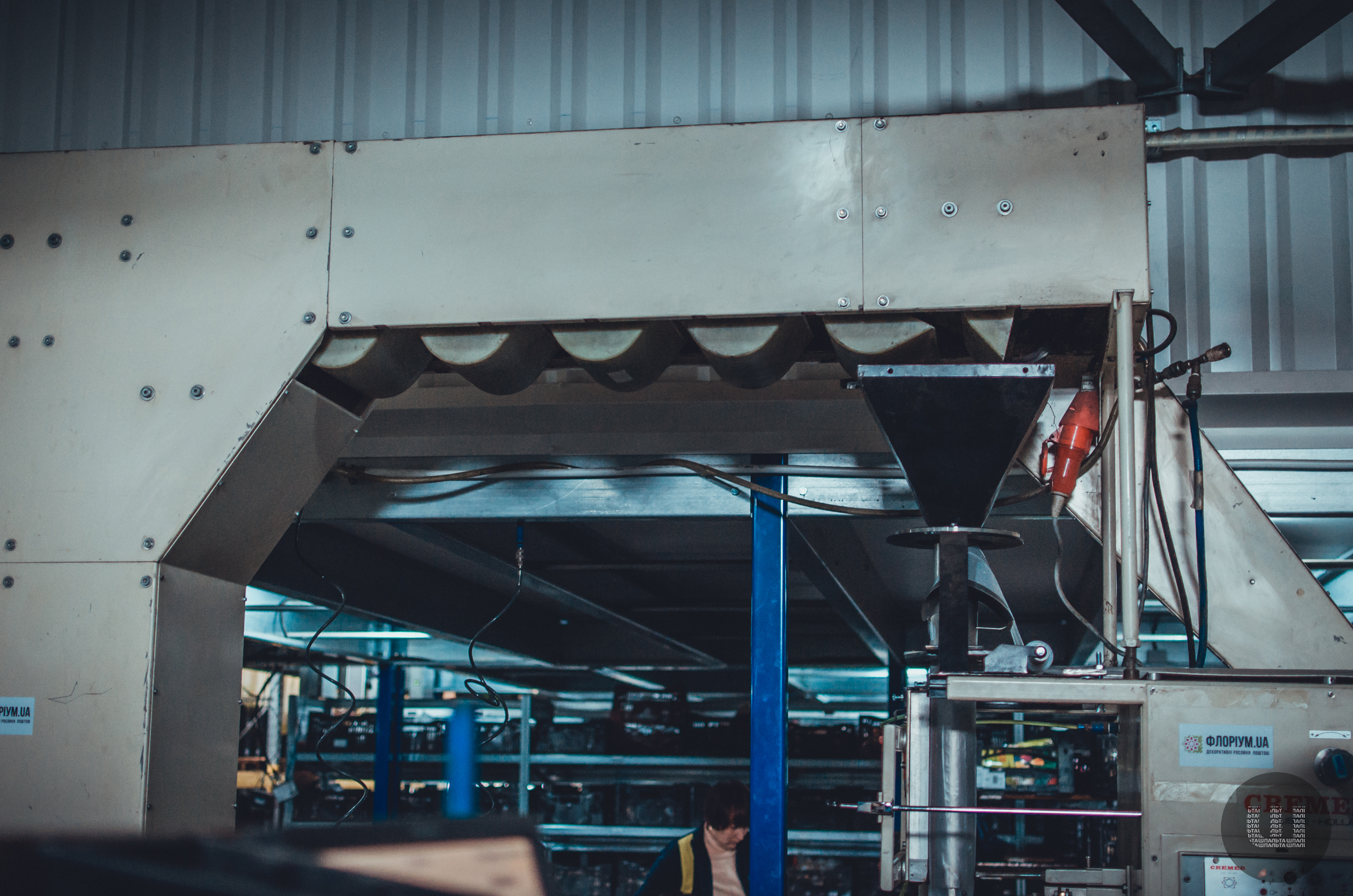 «Процес загалом такий: ми засипаємо в машину, наприклад, 5 тисяч тюльпанів, далі вони проходять стадію протряхування. На цій стадії відстежується якість продукту. Потім – підрахування. Якщо нам потрібно двадцять штук цибульки, то машина автоматично відраховує задану кількість, після чого продукт розподіляється в лоток для фасування. Також до продукції ми додаємо торф. Потім продукт запаковується».
