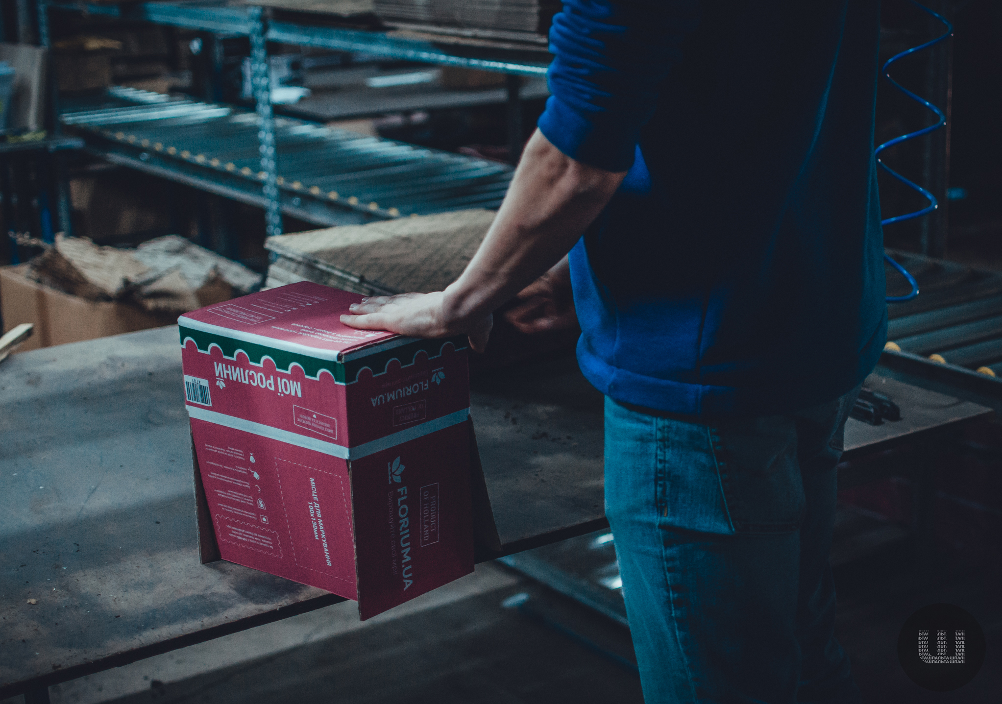 «Під час упакування, ми беремо нашу коробку, вона у нас не така, як у всіх, трішки нестандартна. Із накладанням та закривається спеціальним пістолетом. Швидкість закривання дуже велика, і плюс коробка стає щільнішою».