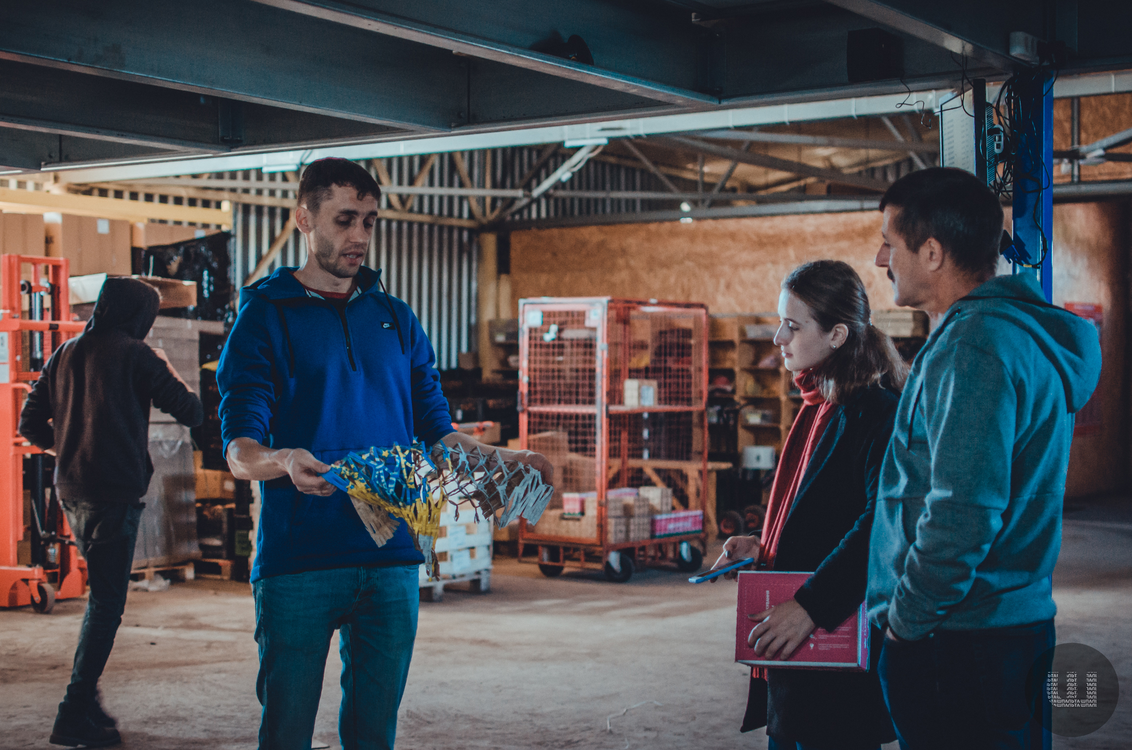 Нам показують, як це відбувається на практиці. Працівниця сканує товар. Далі заходить та збирає товар. Відбирає тільки ту продукцію, де загорілися червоним кольором кнопки.