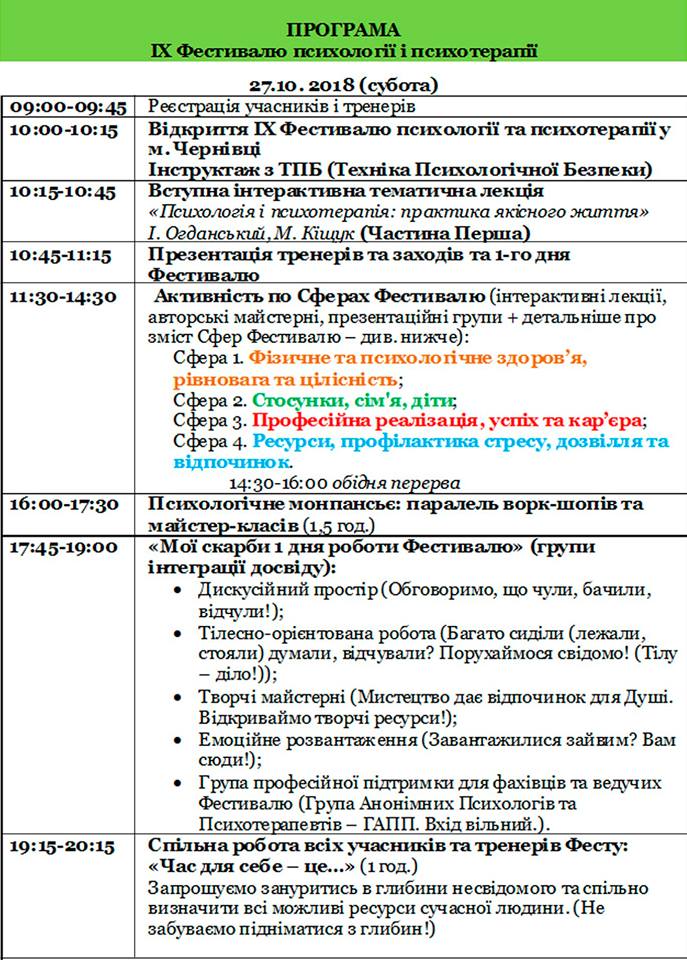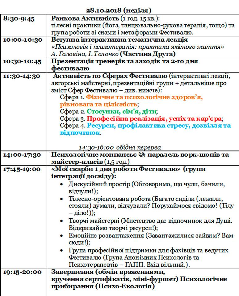 27-28 жовтня, о 09:00, відбудеться щорічний Фестиваль психології та психотерапії.