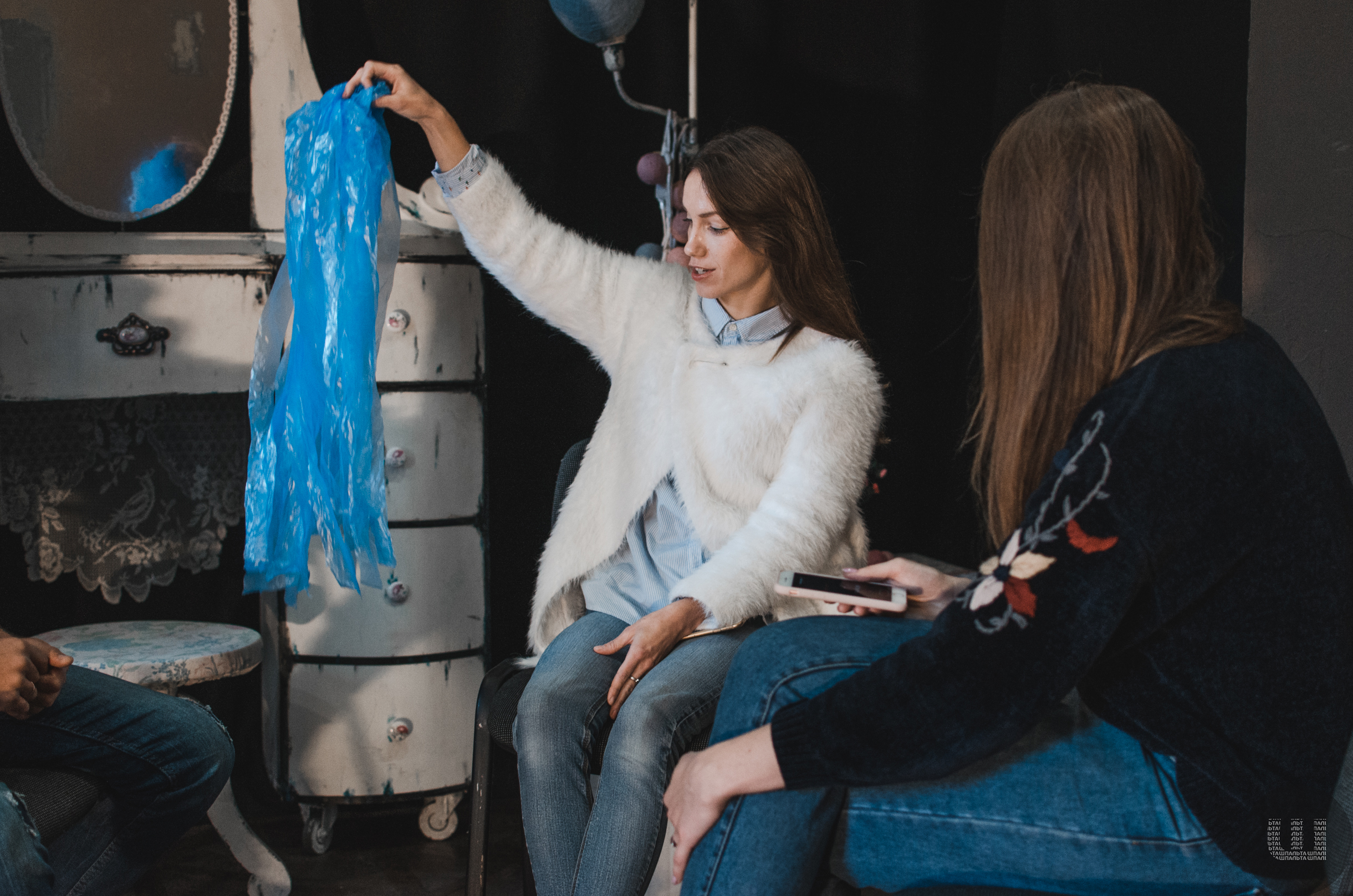 Іван знайомить нас зі своєю дружиною та ніжно називає її Катрусею. Поки наш фотограф налаштовує камеру, Катя тихенько щось майструє. За дві хвилини із простого сміттєвого пакета народжується лялька. Катя розповідає, що за допомогою простих людських рухів вона (лялька) оживаєсаме вміння надавати душі неживому є основою їхньої роботи.