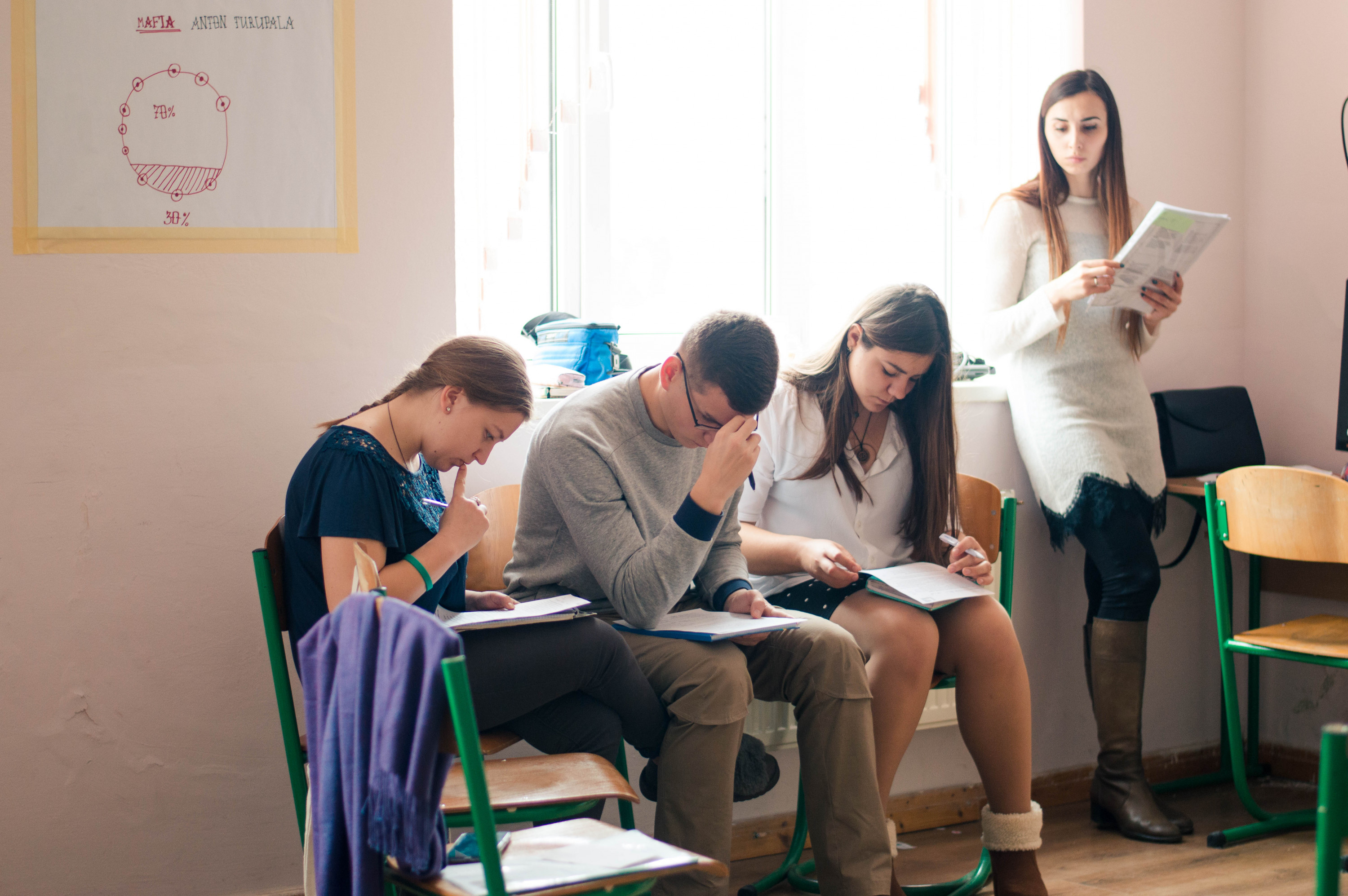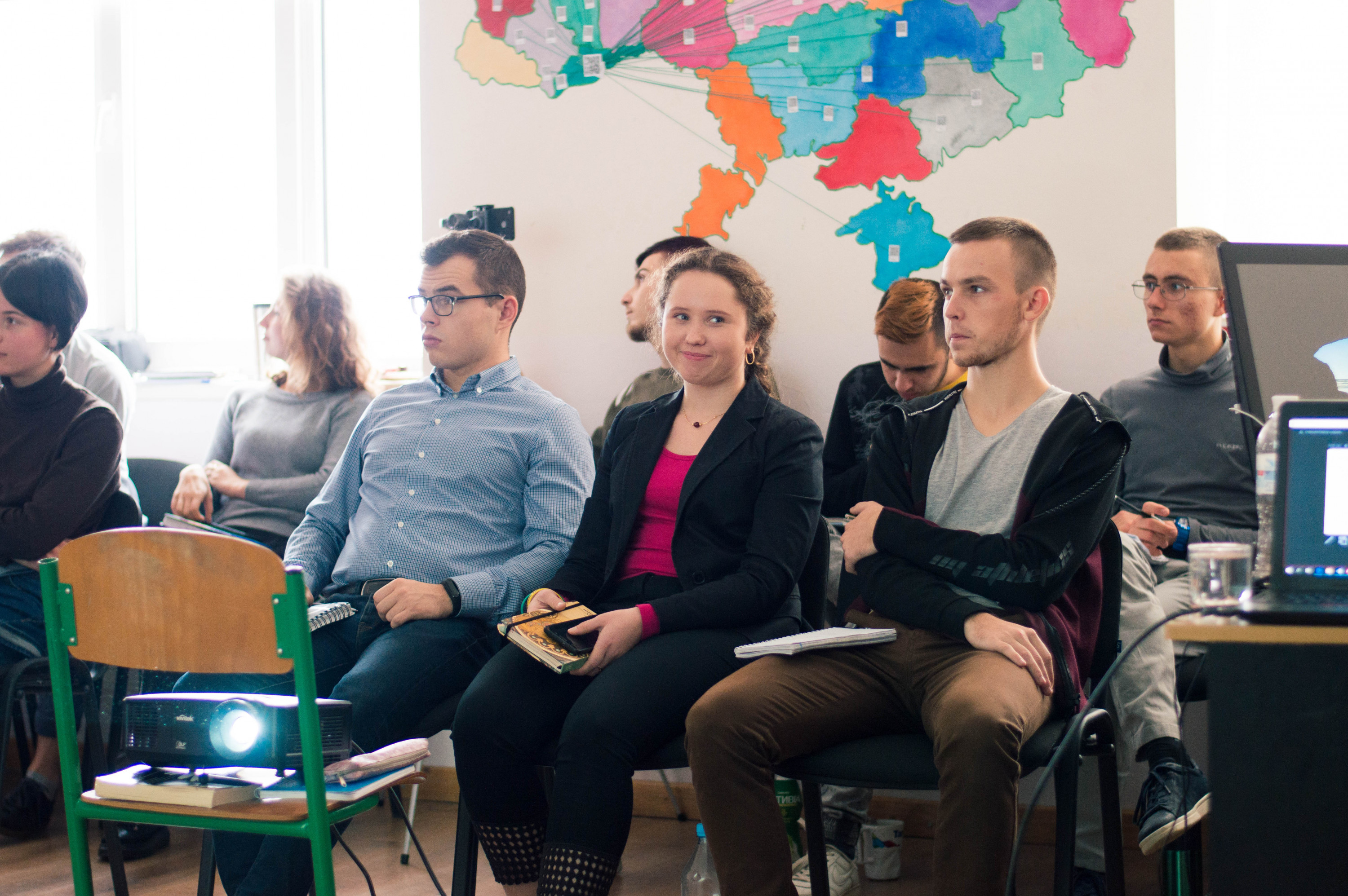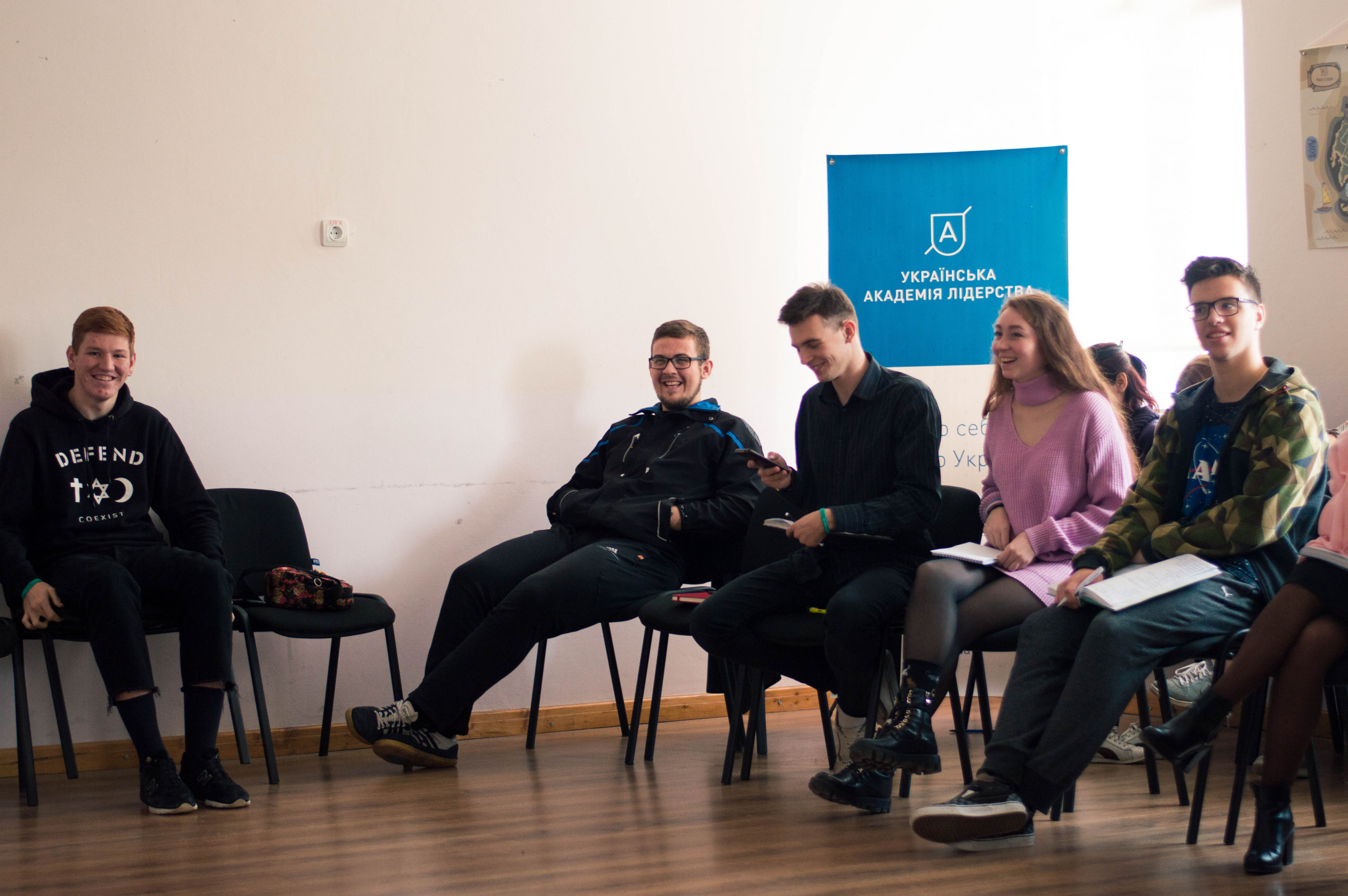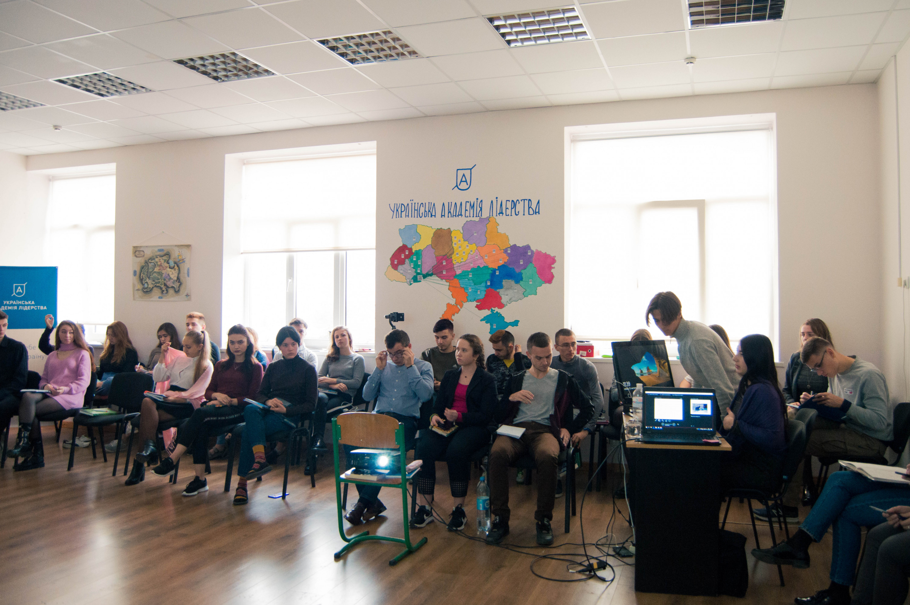 Тихенько заходимо у простору кімнату – зараз у студентів заняття, вони сидять у двох колах і щось активно занотовують.