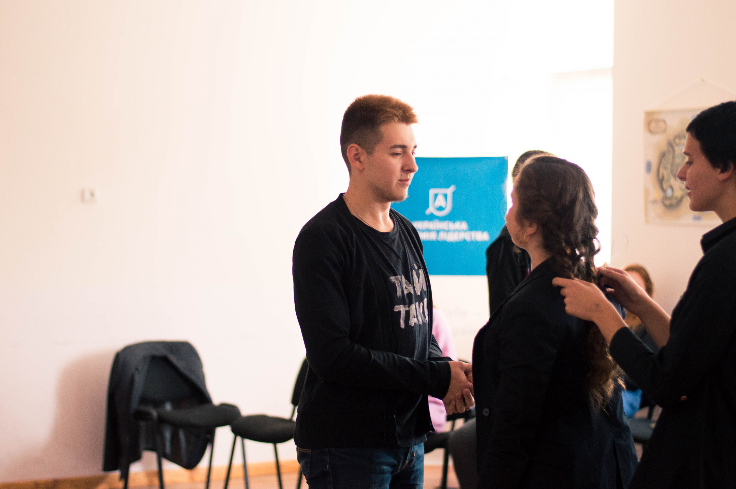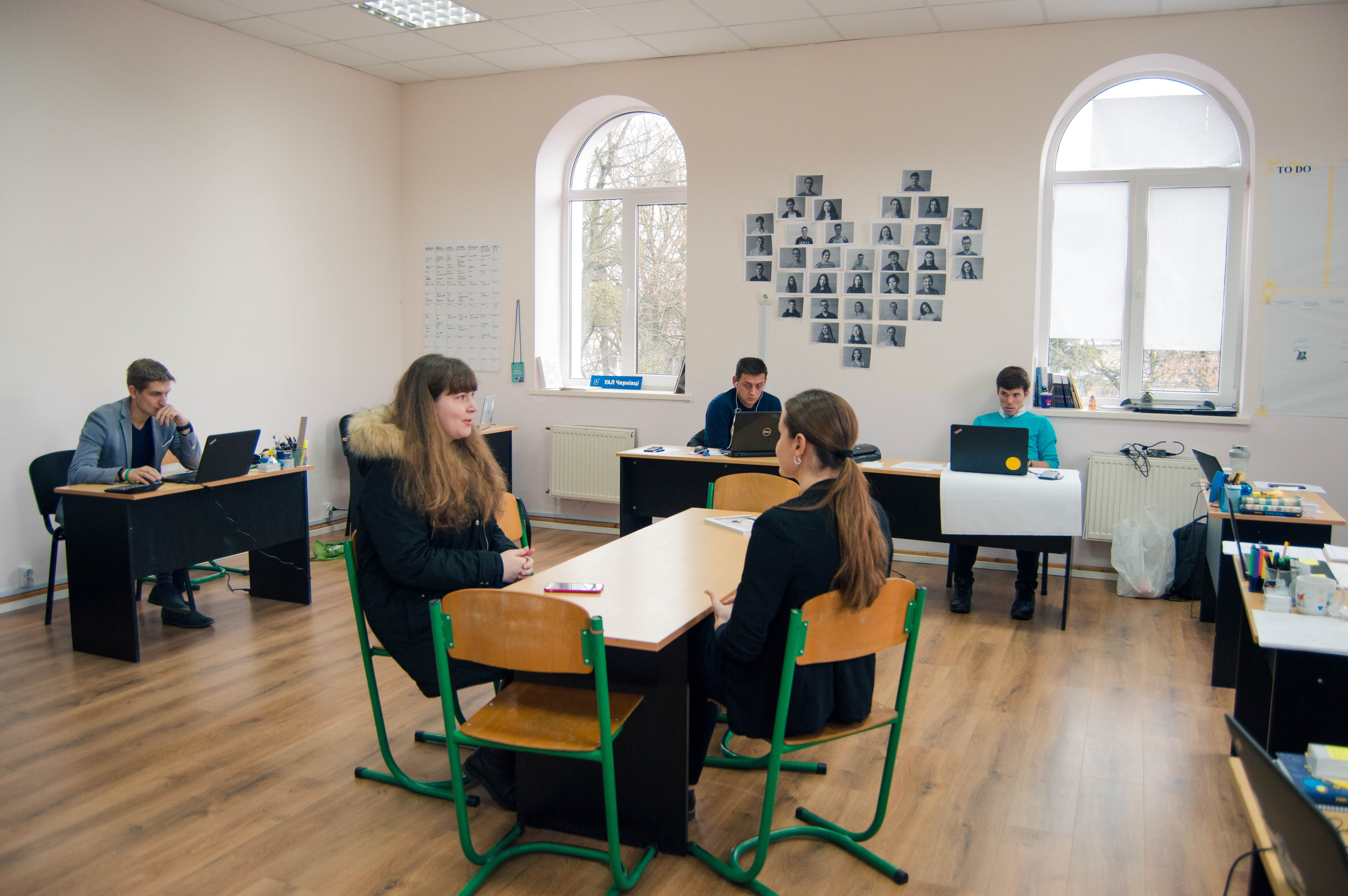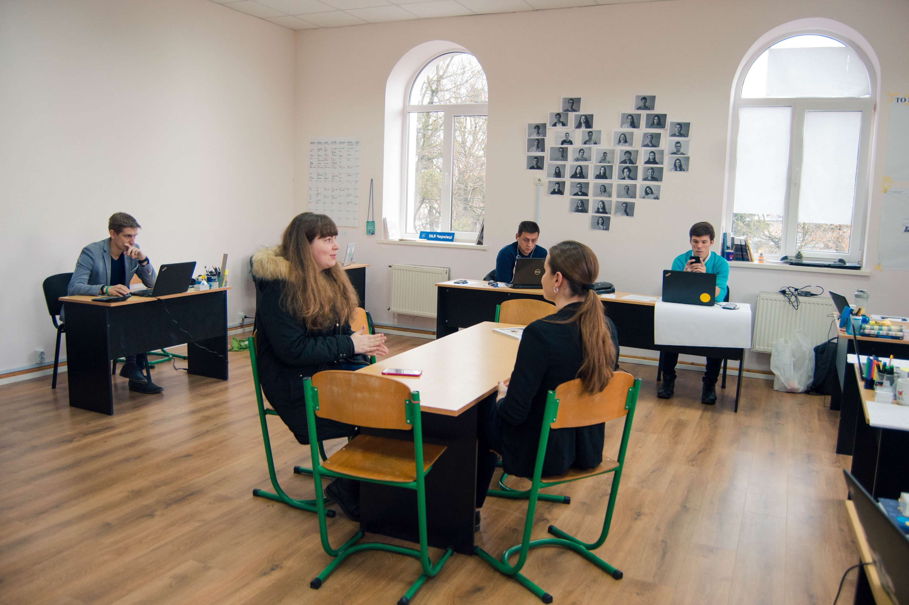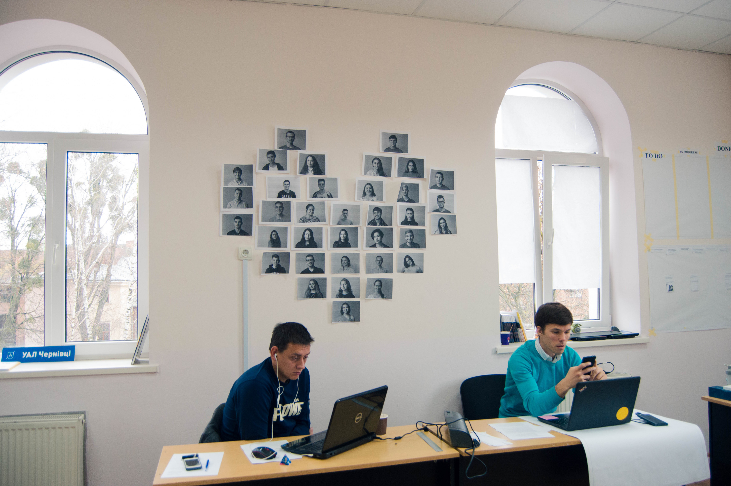 Знайти одразу Українську академію лідерства (надалі – УАЛ) виявилося не так і легко. Вона розташована на четвертому та п`ятому поверхах Буковинського університету, що на вулиці Дарвіна, 2А, але чітко відділена окремими боковими сходами. Менеджерка чернівецького осередку УАЛ Євгенія Матейчук зустрічає нас та проводить одразу до офісу. На дверях помічаємо два малюнки, прикріплених жовтим скотчем. Там зображені висмоктувачі щастя зі всесвіту Гаррі Поттера, але з чужими прифотошопленими лицями. І зверху підпис – «(ДЕ)ментори». Як ми згодом дізналися, ментори – це своєрідні вчителі-наставники для УАЛівців. Заходимо до кабінету – саме там Євгенія, її заступники та славнозвісні «дементори» вдосконалюють академію. Знайомимося з усіма. Виявляється, що лише одна людина місцева, інші – з Миколаєва, Тернополя, Броварів, Львова. Чому ж для нового осередку обрали саме Чернівці – найменший обласний центр?