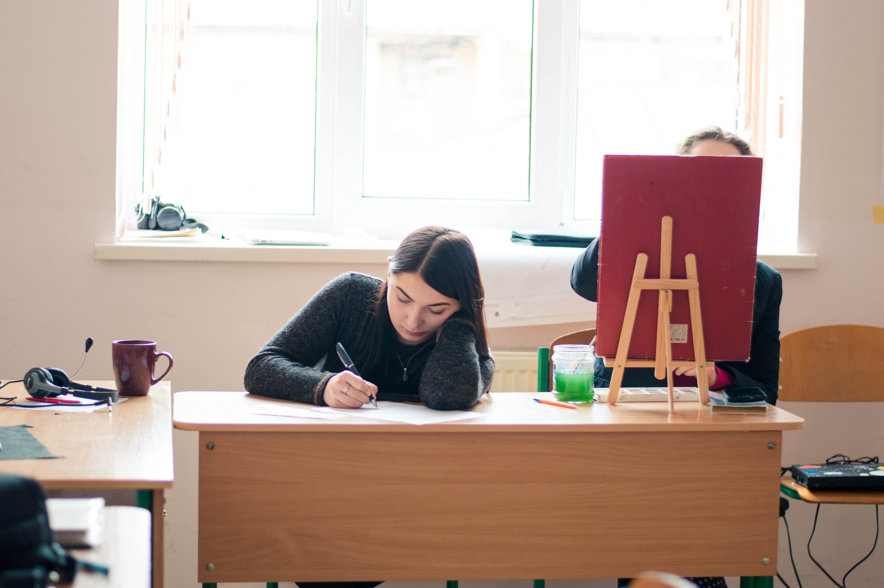 — У нас закінчилася англійська, хочу ще доробити декілька завдань, – відповідає дівчина, котра сидить на ліжку і щось ретельно записує.