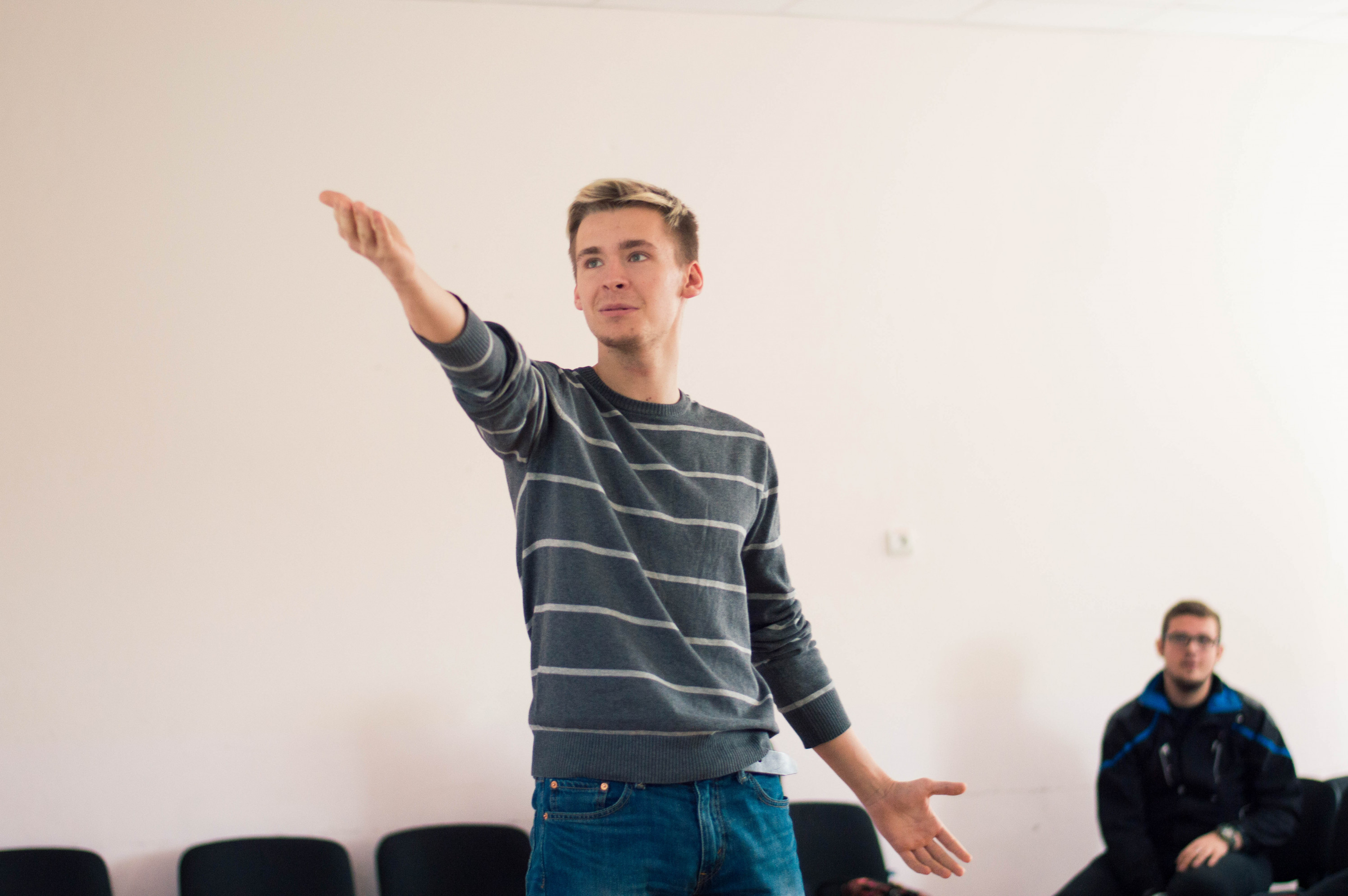 «Я зараз навчаюсь на індивідуальному. От їздив якраз складати два іспити, на наступних канікулах ще два. Насправді, дуже цікава історія, як я сюди потрапив. У мене в групі є один хлопець. Торік він був у академії, розповів мені, що в них має бути зустріч з Вакарчуком. Я кажу: «Візьми мені автограф». Він каже: «Окей». І не взяв… Я думаю: «Ну добре, тоді я сам візьму». І тут раз і – потрапив у академію. А потім вже подумав, що тільки через Вакарчука вчитися 10 місяців у академії – не ок. Саме тоді задумався, чим мені навчання тут стане корисним. Змінивши себе, хочу змінювати Україну. Як люблять казати бабульки в потязі – «це всьо сістєма прогнила». Саме тому я тут. За два місяці вже визначився, чим хотів би займатися надалі. Мені надзвичайно подобається сфери відео і звуку – хочу розвиватися у цьому напрямку. Або ще дизайн», – пояснює Ярослав.