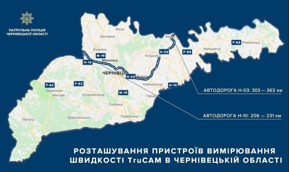 З 3 грудня у Чернівецькій області запрацює ще один пристрій «TruCam», про це повідомляють в Управлінні патрульної поліції у Чернівецькій області. Один із пунктів контролю з’явиться на трасі Н-03 «Житомир–Чернівці». Нагадаємо, перший пристрій облаштували на ділянці автотраси Н-10 «Стрий-Івано-Франківськ-Чернівці-Мамалига».