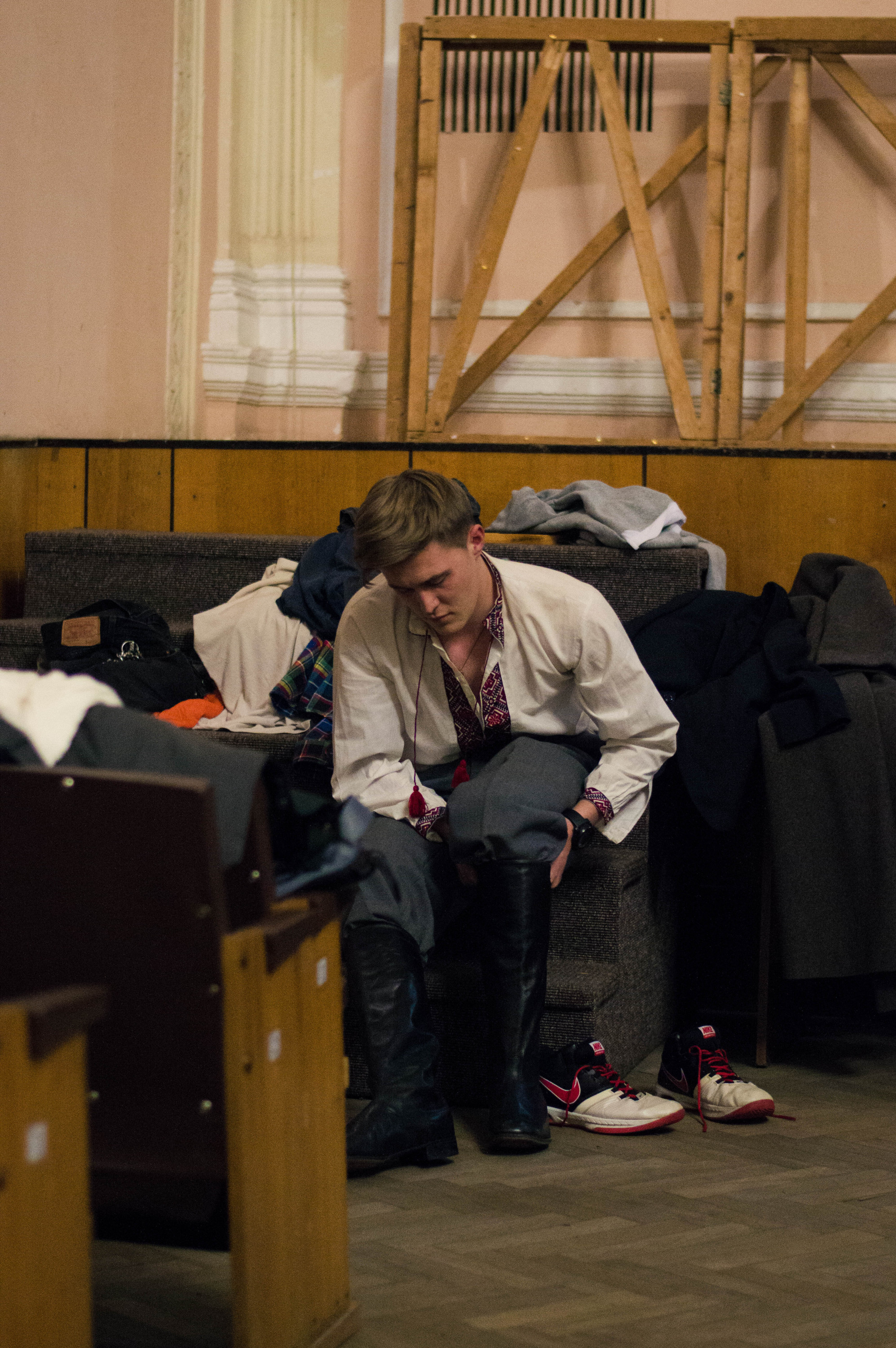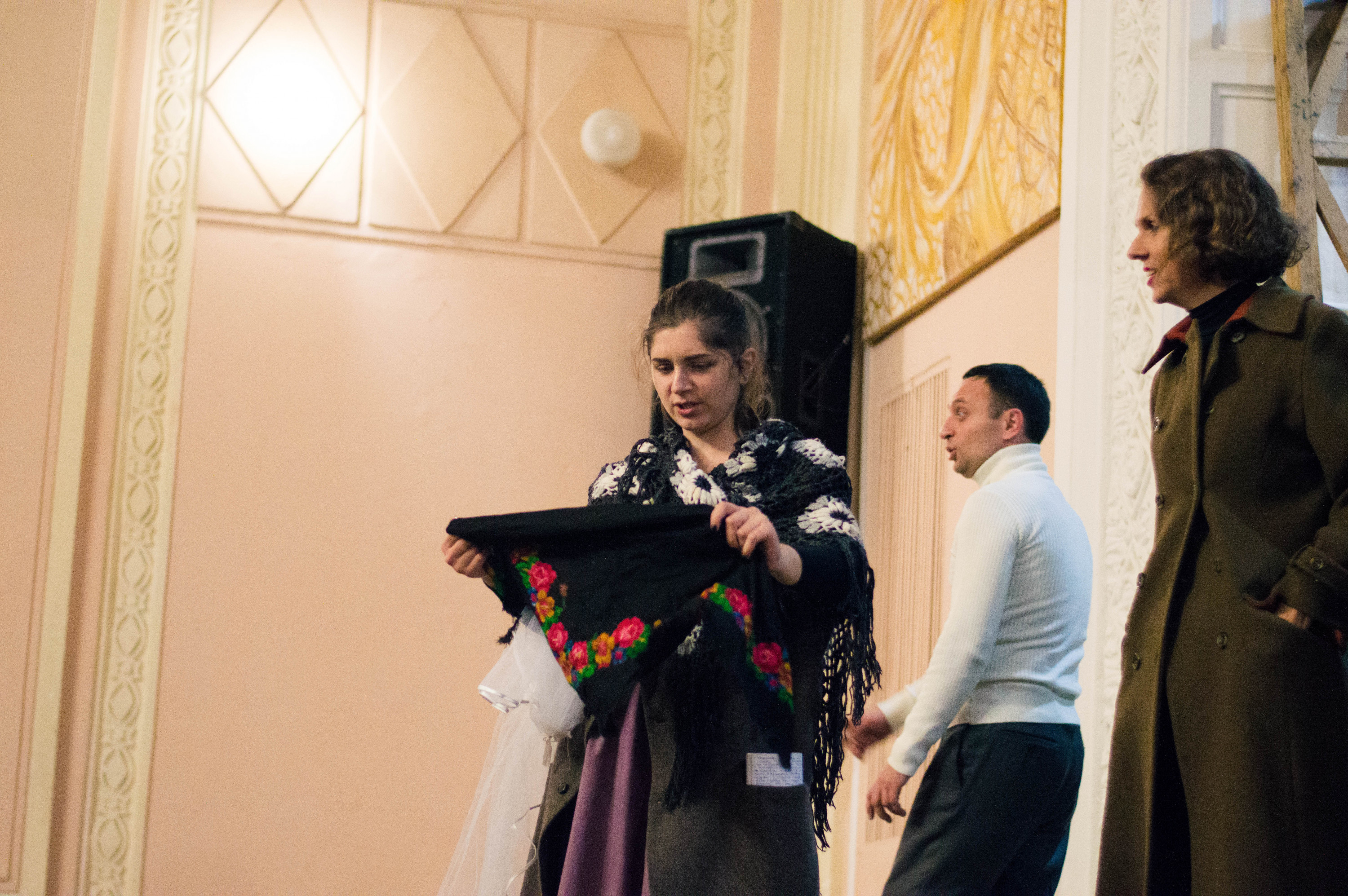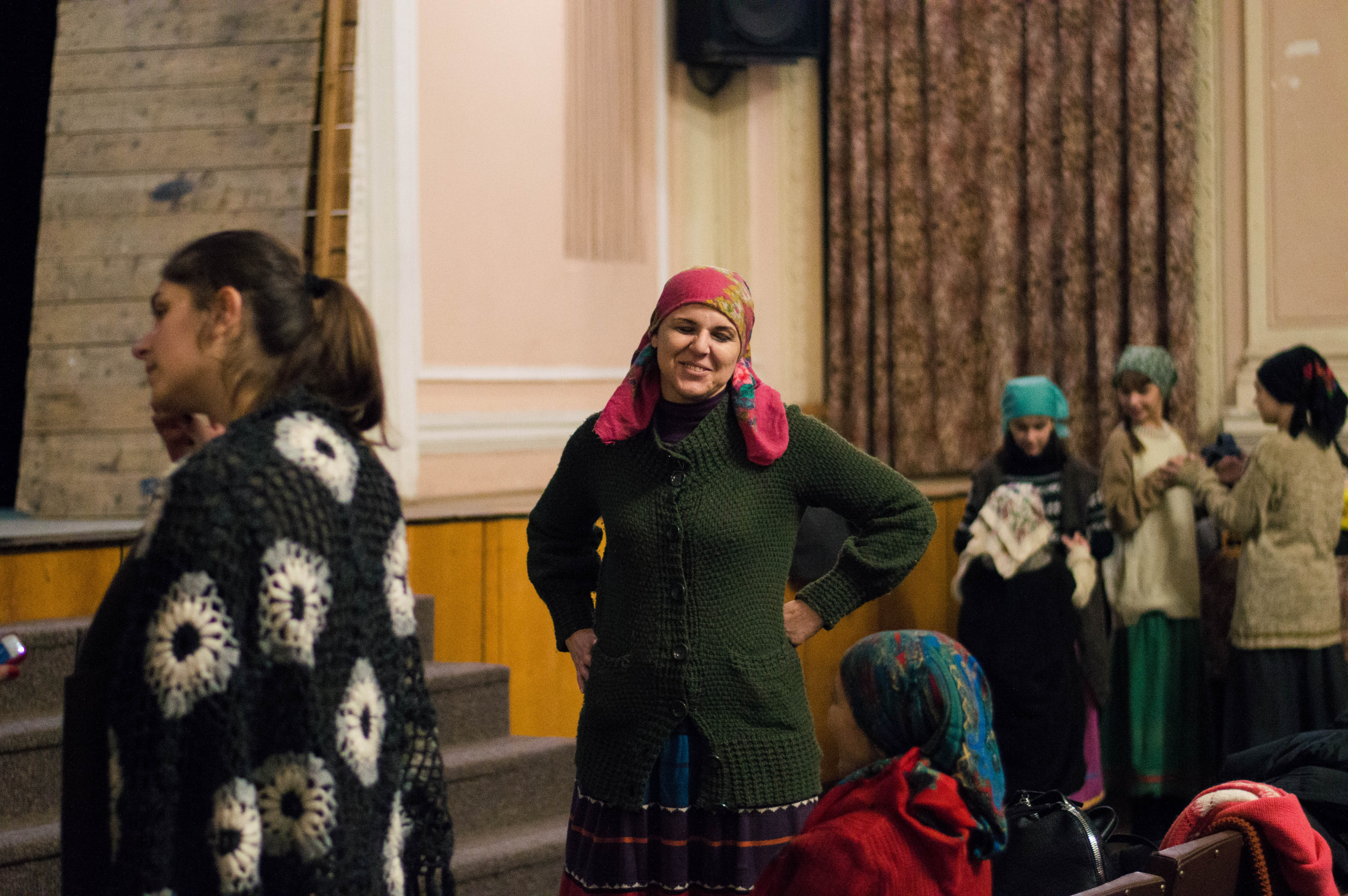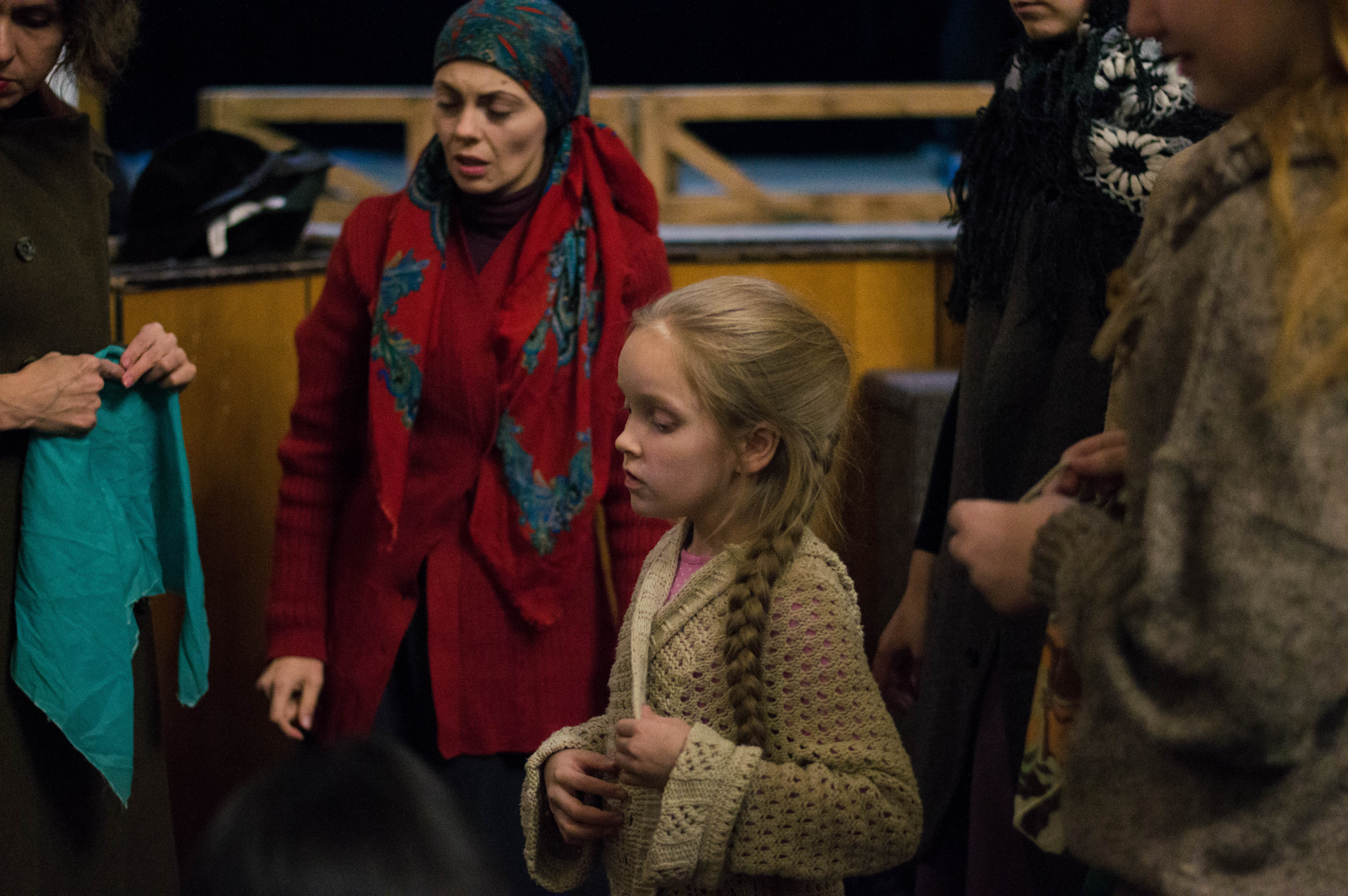 Тим часом нарум’янені від морозу хлопці починають заносити на сцену широкі дерев’яні декорації. Поки я оглядаю величезну конструкцію, мої співрозмовниці вже встигли розбігтися.