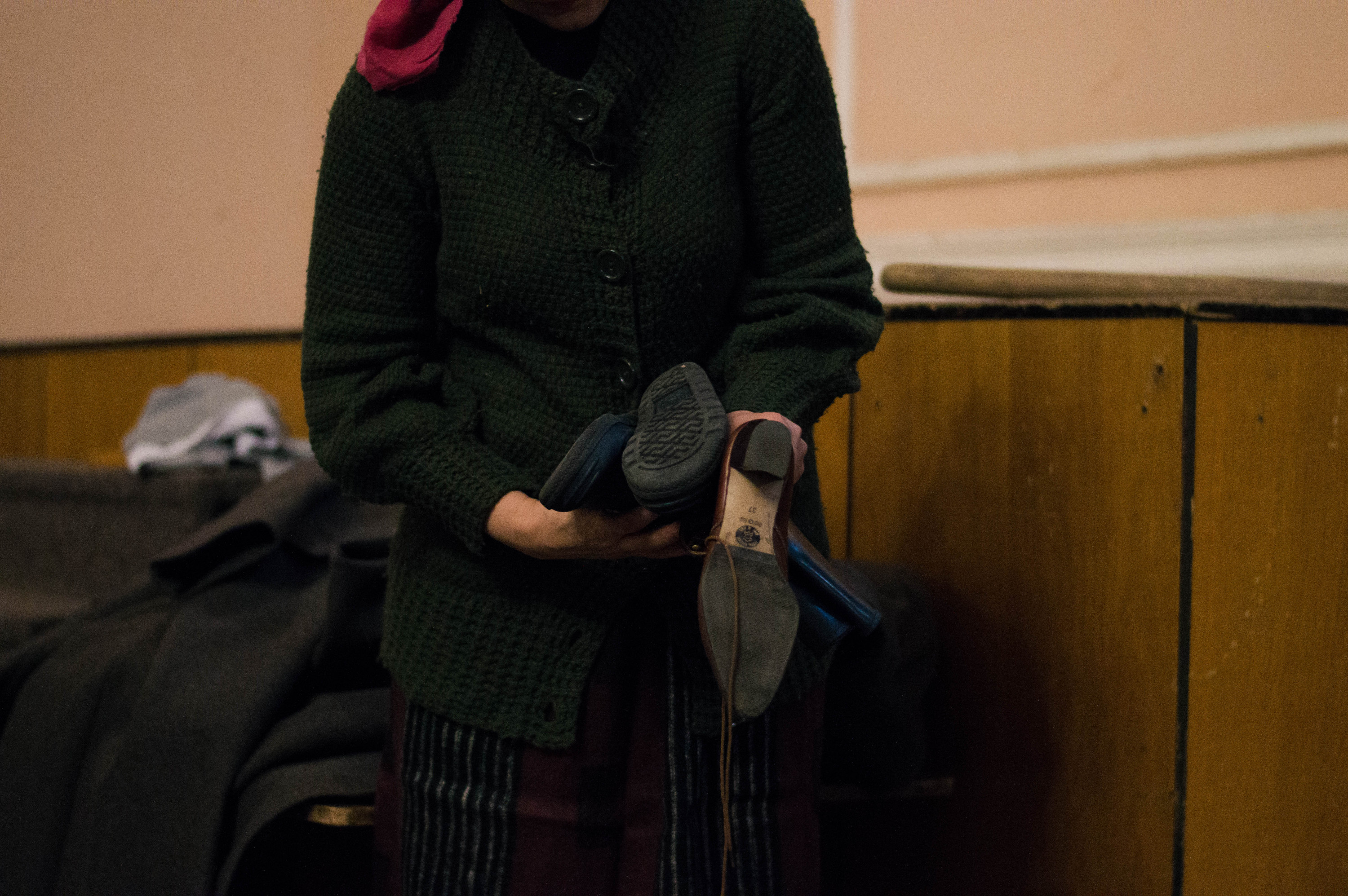 Людей помітно більшає. Починаються приготування. Жінки ретельно пудряться, чоловіки приміряють чоботи – шукають у пакунку з мішковини відповідний розмір.