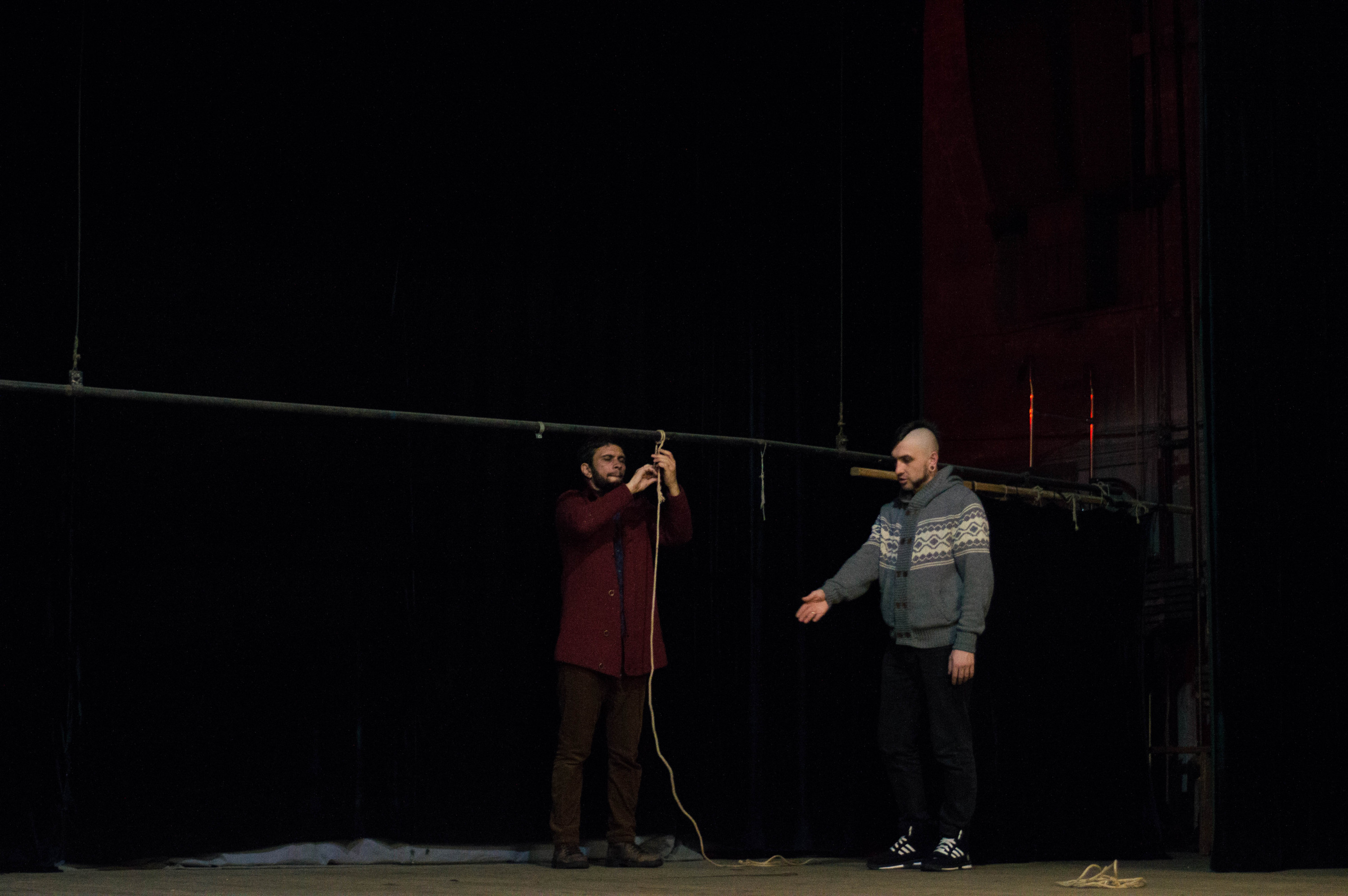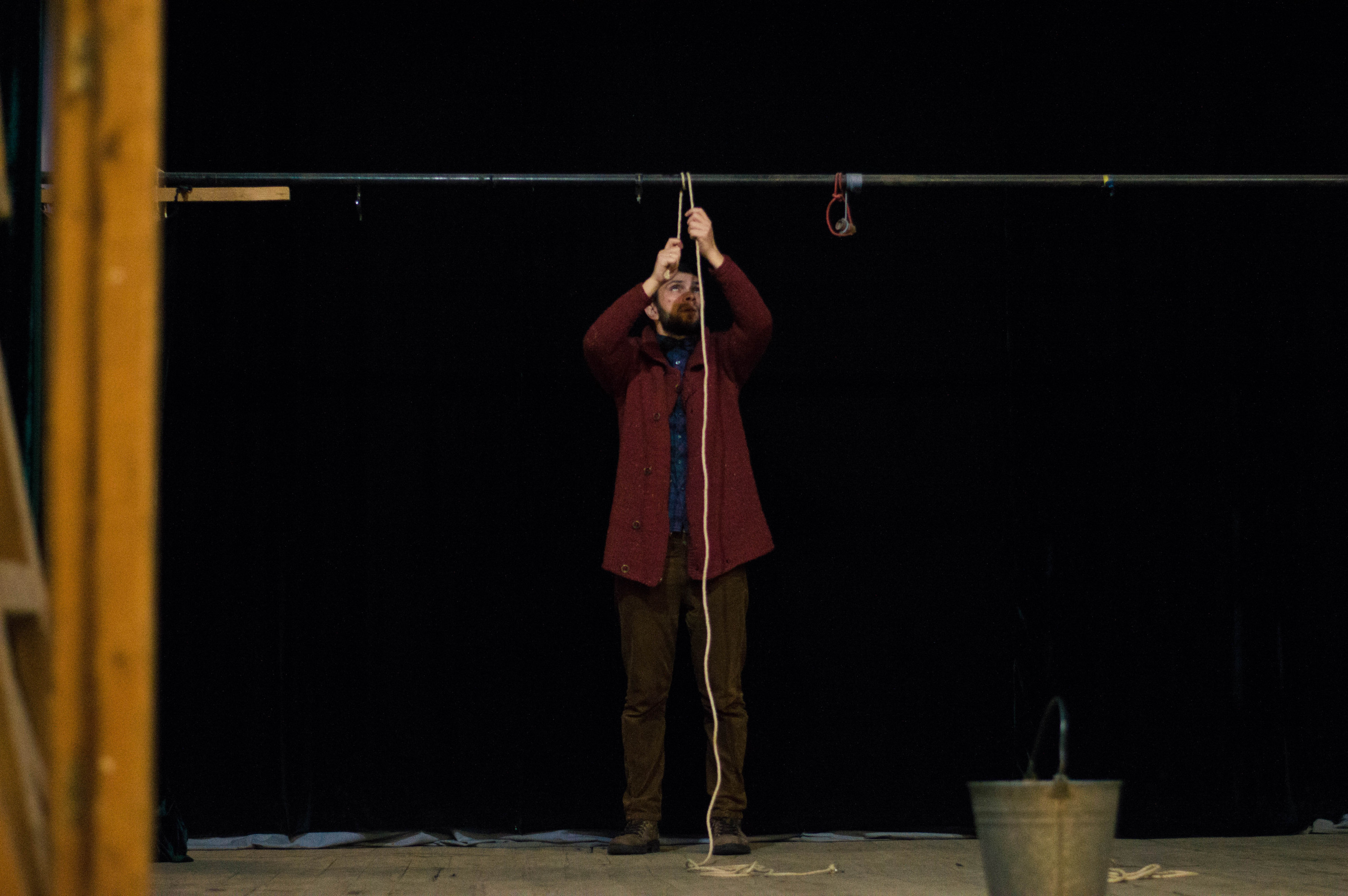 Тим часом на сцені вже починають монтаж декорацій – Іван Данілін разом із помічниками починають з’єднувати масивні дерев’яні деталі, закручують гвинтики та одночасно наставляють вихованців: «Дівчата, злізьте зі сцени, сядьте в зал».