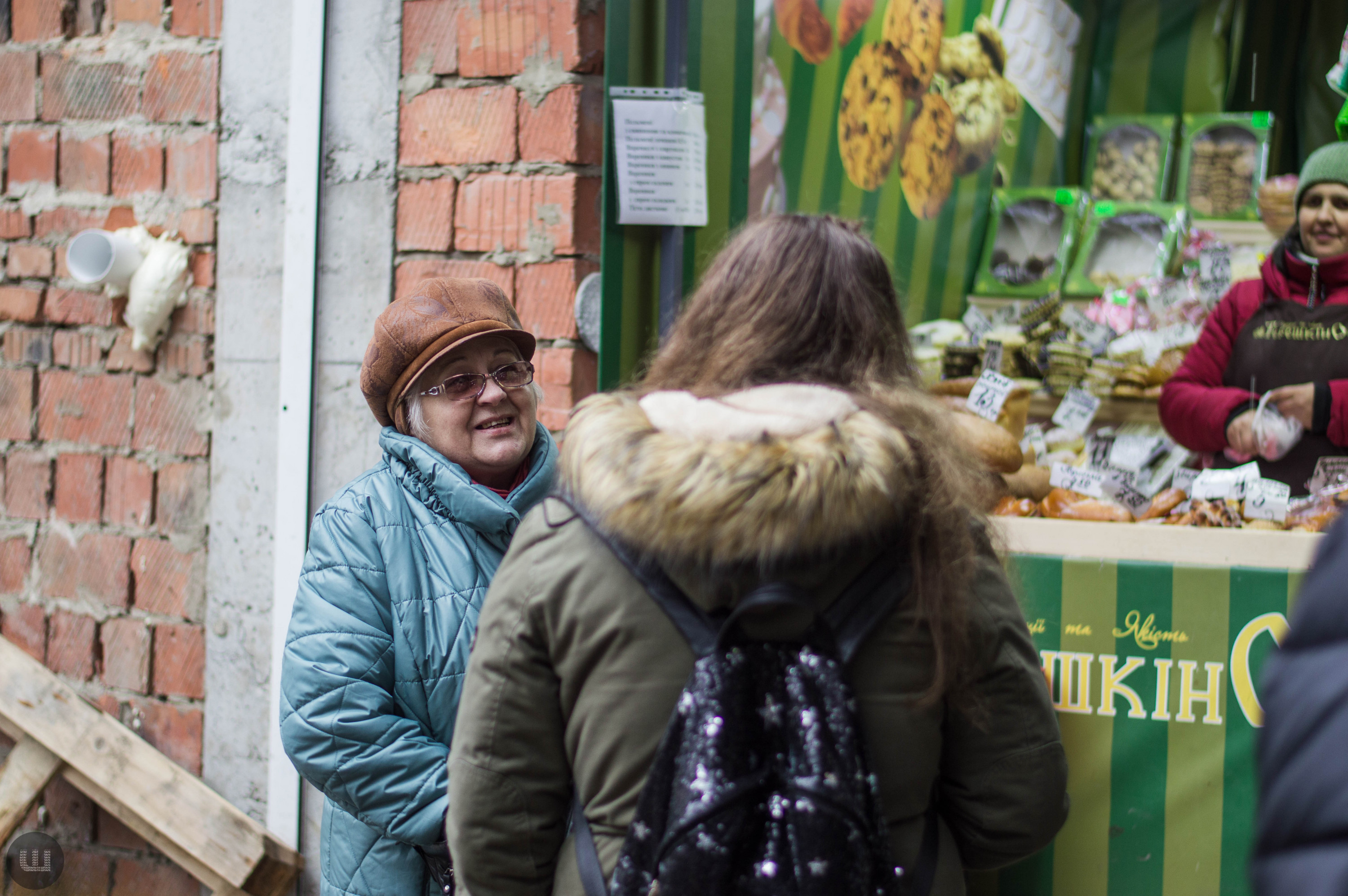 «Я вам так скажу, пенсія в мене 1400. А заплатити ще за воду, світло, газ. Мені не вистачає. Я от тюльку взяла, знаєте, що це? Тюлька, барабулька та й капусточка квашена за 10 гривень. Дивлюся, хочу мандаринку та й апельсинку, а ціни шалені»