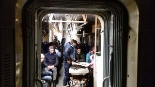 Потяг рушив о 19:29. Збуджені пасажири притихли, а перша спроба ввімкнути світло провалилася. Не горіли навіть таблиці з розкладом прибуття. Не працювали вакуумні туалети. Натомість у кабінах можна було спостерігати веселу картину:
