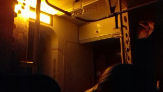 О 21:35 на декілька секунд з’являється світло. Потім вмикається табло. Згодом світло працює в одному з вагонів.