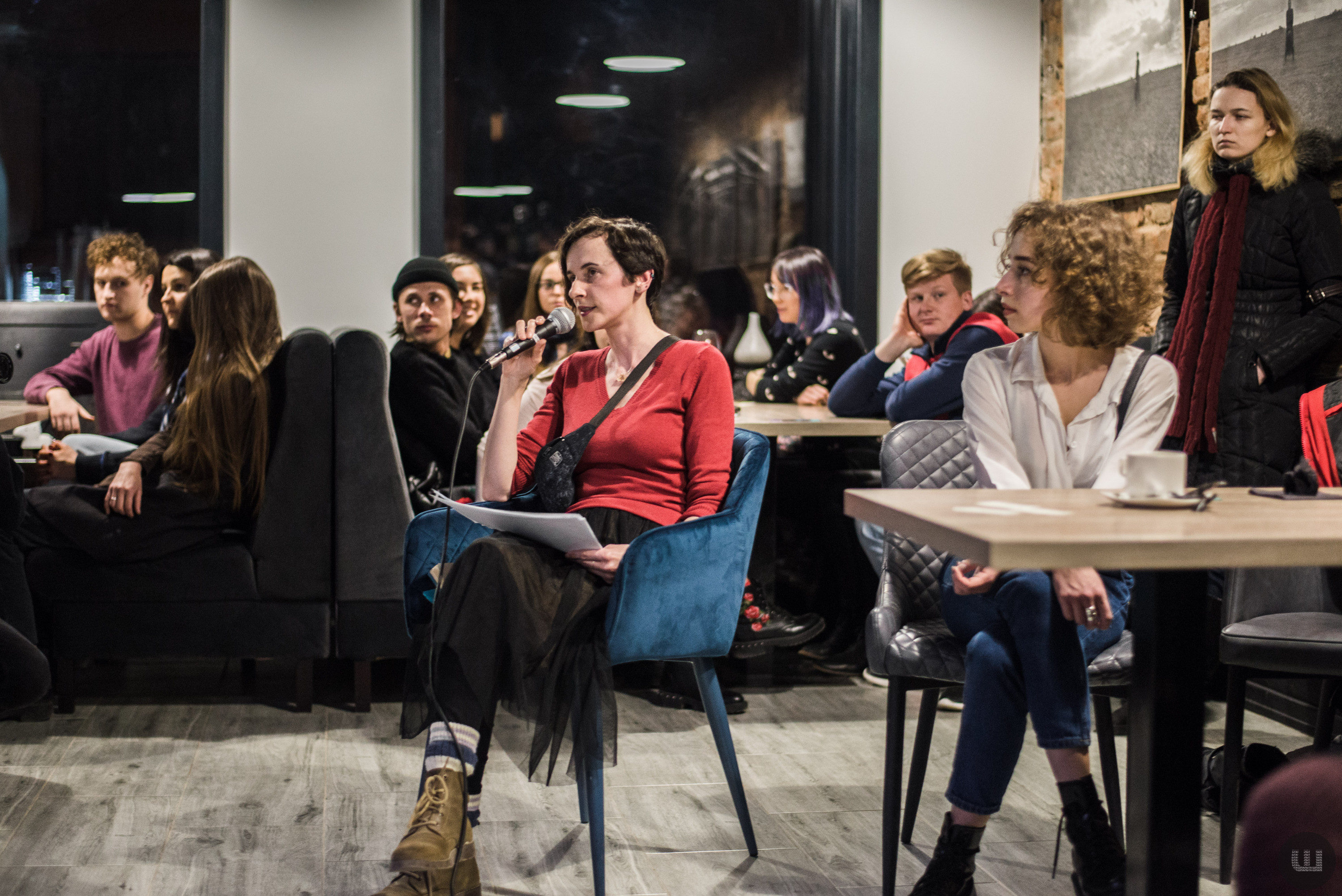 За словами організаторів, такий перформанс дозволяє відвідувачам розслабитись, знайти своє місце у тому середовищі в якому вони перебувають нині. Весь вечір лунала розслабляюча музика, інколи під неї читали поезію та демонстрували відео, зняте в тому ж приміщені, де проводили захід.