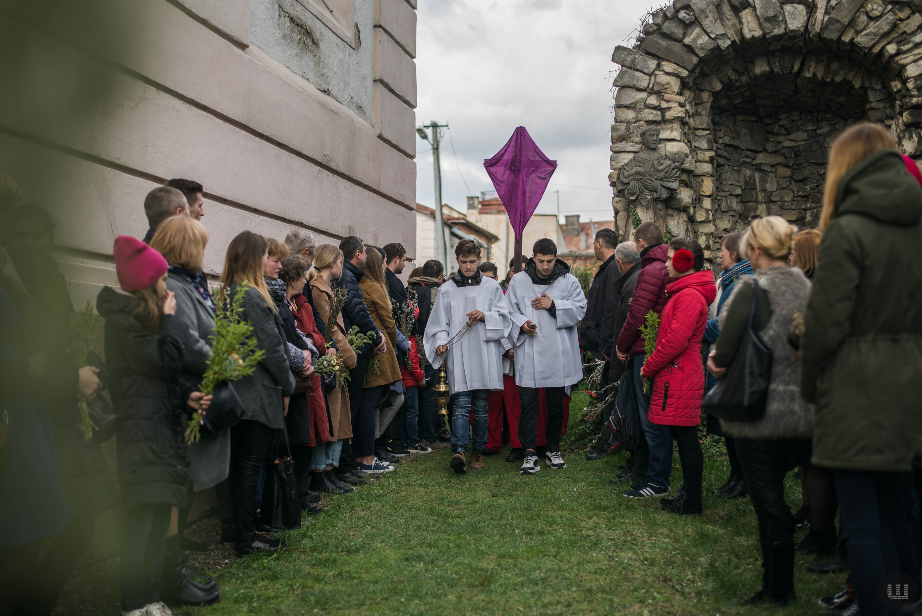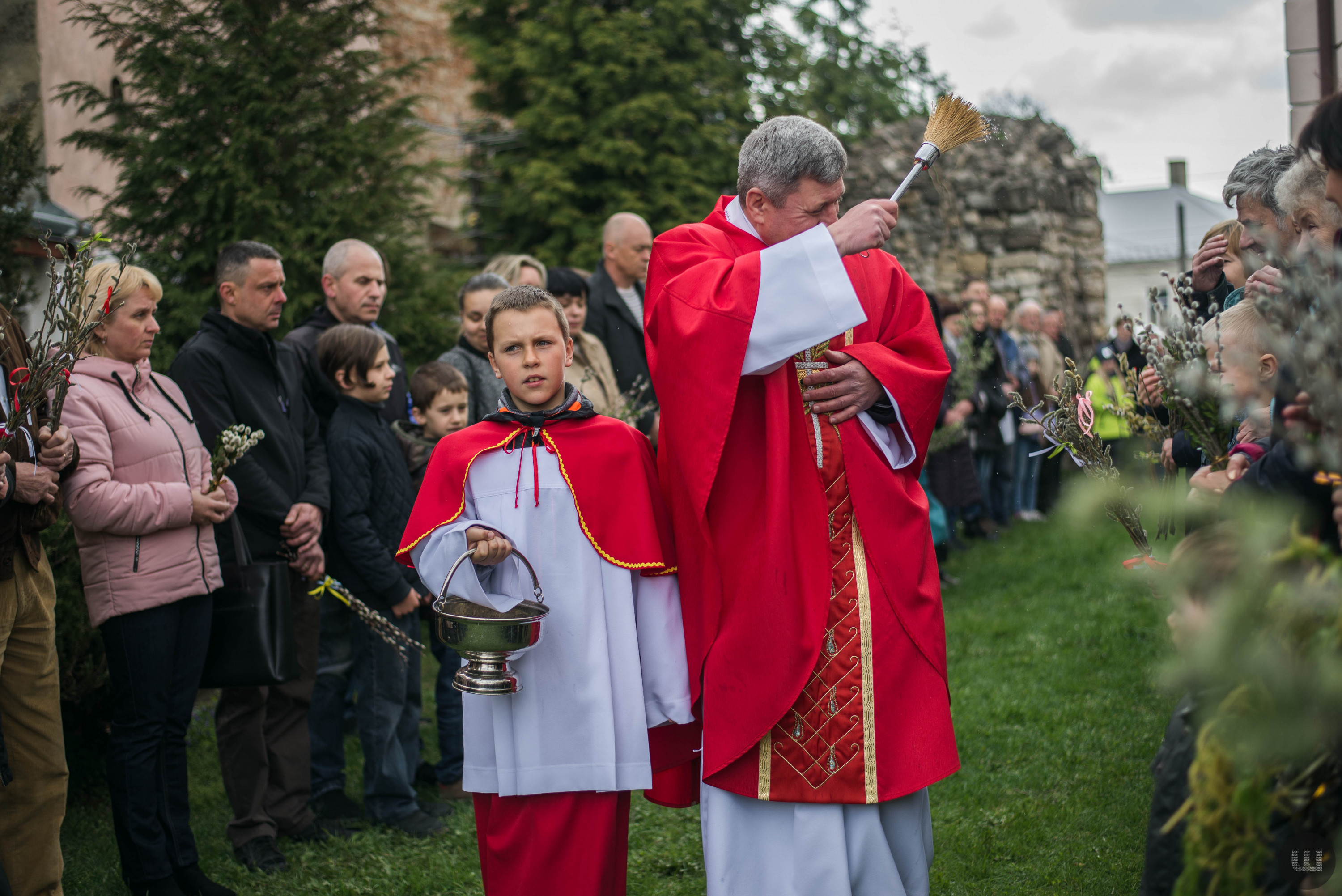 Уже традиційно перед костелом молодь парафії влаштувала ярмарок: продавали готові перев’язані вербові гілочки. Отримані кошти скерують на благодійність – допомогу на лікування Софійці Мешак (у дівчинки структурна епілепсія та затримка розвитку, родині потрібні кошти на обстеження закордоном та лікування).