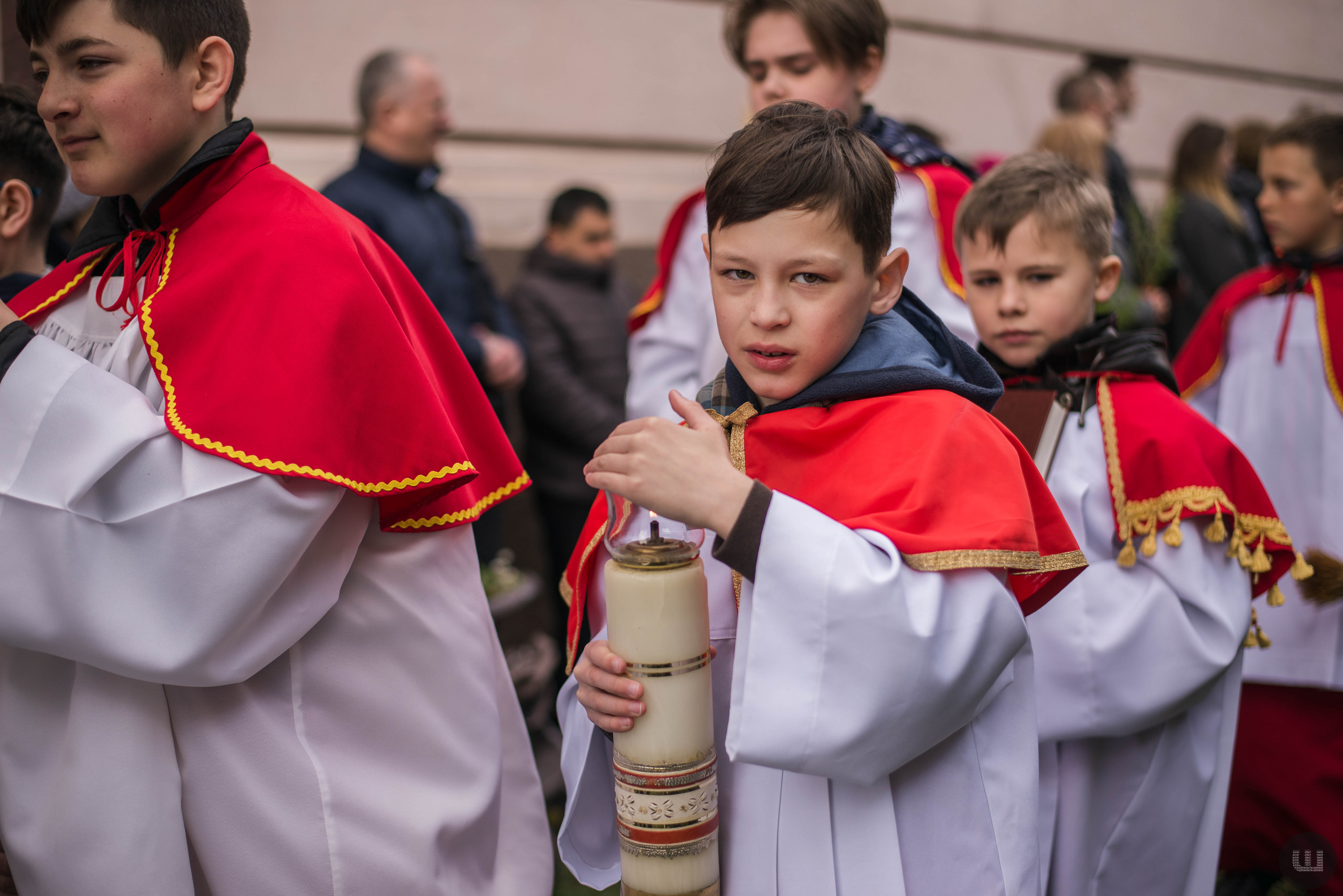 На Пасху у Малій базиліці буде дві Меси: о 8:00 та 13:00. Пд час ранкової Меси буде урочиста процесія навколо костелу. Вже другий рік поспіль римо-католики планують розширити маршрут і пройтися вулицями Бетховена – Заньковецької, а біля церкви Св. Параскеви повернути на вул. Головну і звідти до костелу.