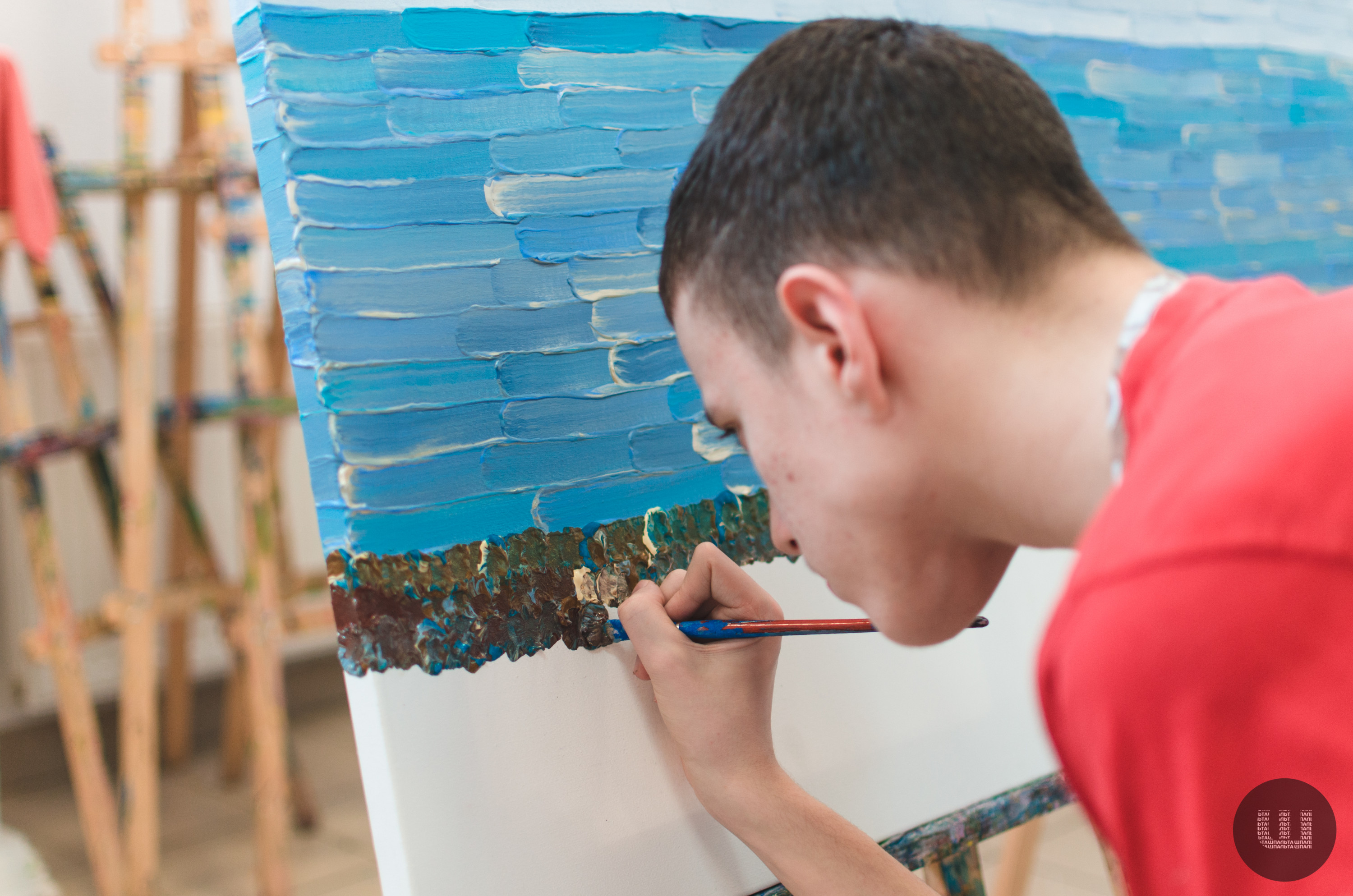 «Його брат Лука ходив на малювання у студію «Монмарт». Данилка ми брали з собою. Якось він туди зайшов, і в нього був такий захопливий погляд. Він рідко звертається до когось повними фразами, а тоді спитав: «Мамо, можна я також буду з дітками малювати?» Прийшовши додому, він запитав, коли у нього наступний урок, і захотів піти малювати далі. Він мало кого підпускає до себе, та з Христею у них якась хімія. Вона спілкується з ним так, як і я. Відтоді малювання – його улюблена справа», – каже Альона.