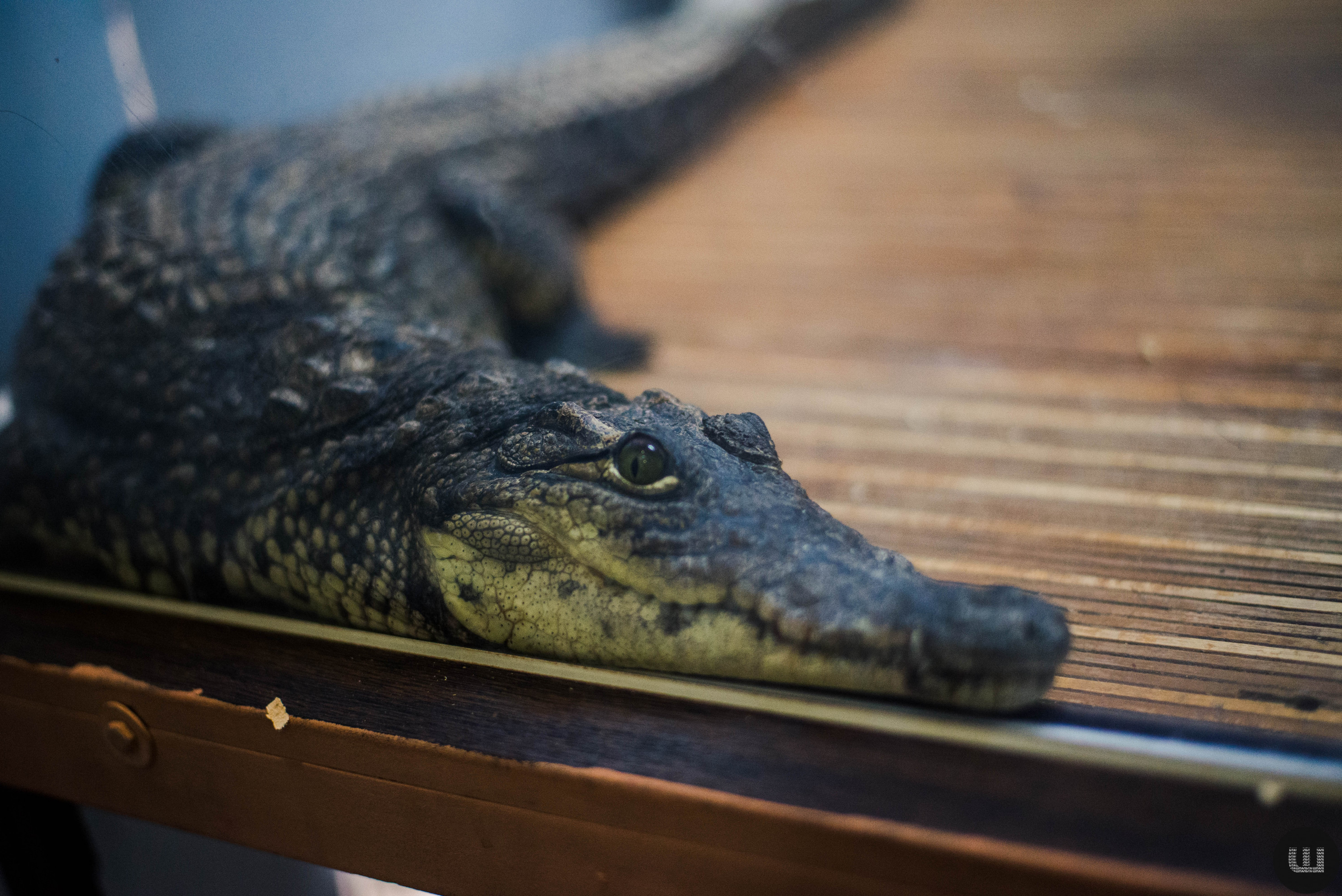 Першим відвідувачів виставки зустрічає нільський крокодил. Тварина небезпечна, тож близько до вольєра краще не підходити.