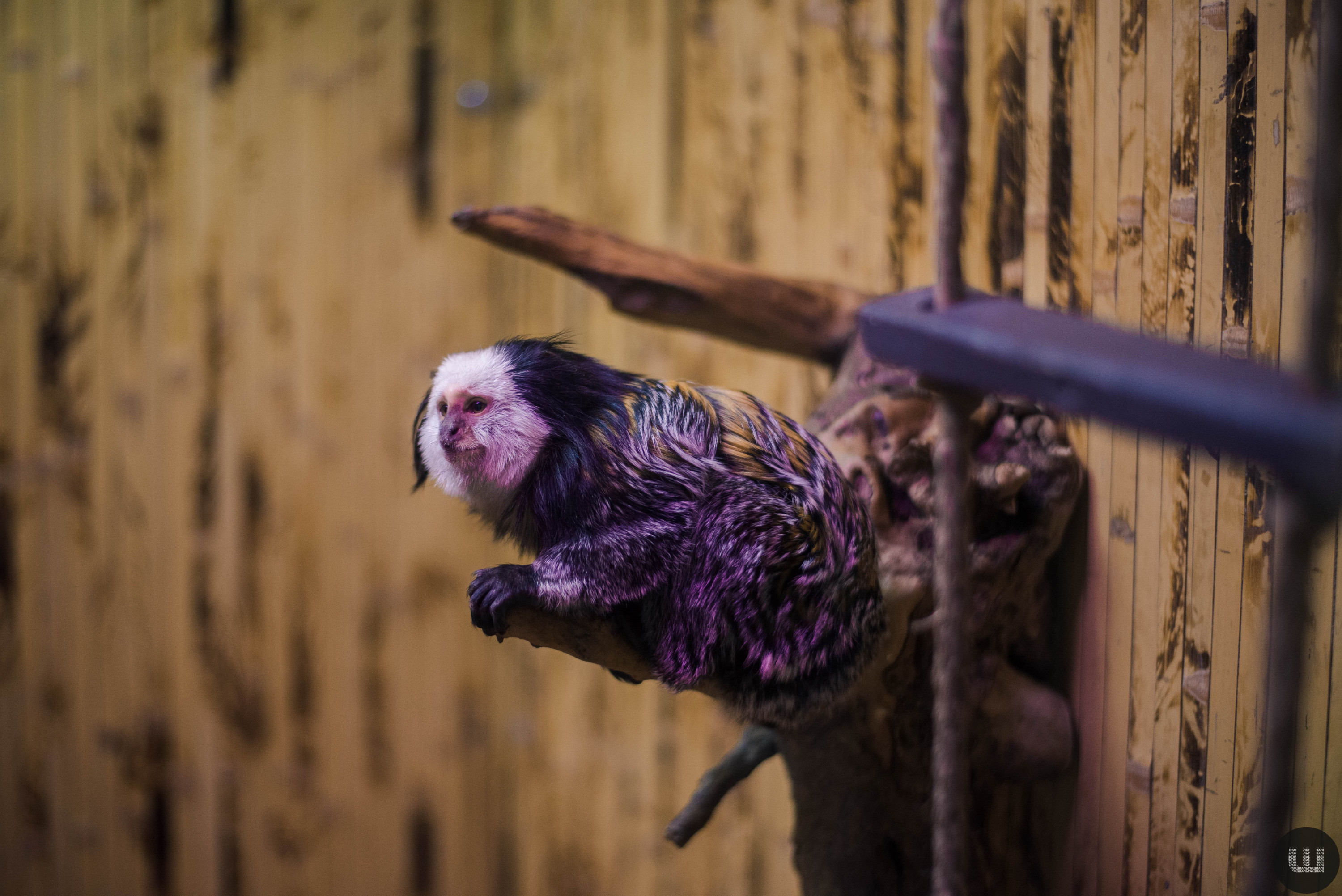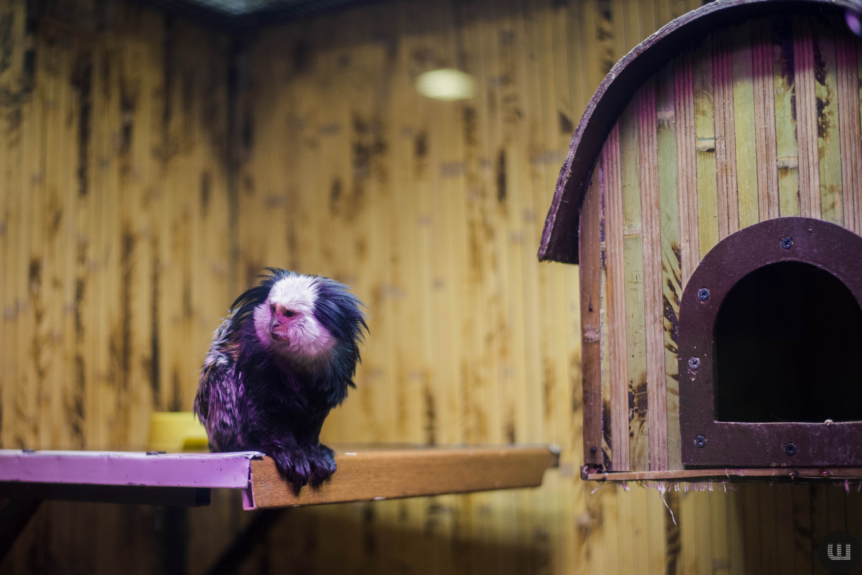 «Це частина приватної колекції… Ми періодично подорожуємо з виставками великими містами України. Тут 17 мавпочок різних порід, та кожна зі своїм характером. Їх купили з розплідників ще маленькими. Карликова мавпа коштує більше тисячі доларів», – розповідає Юрій.