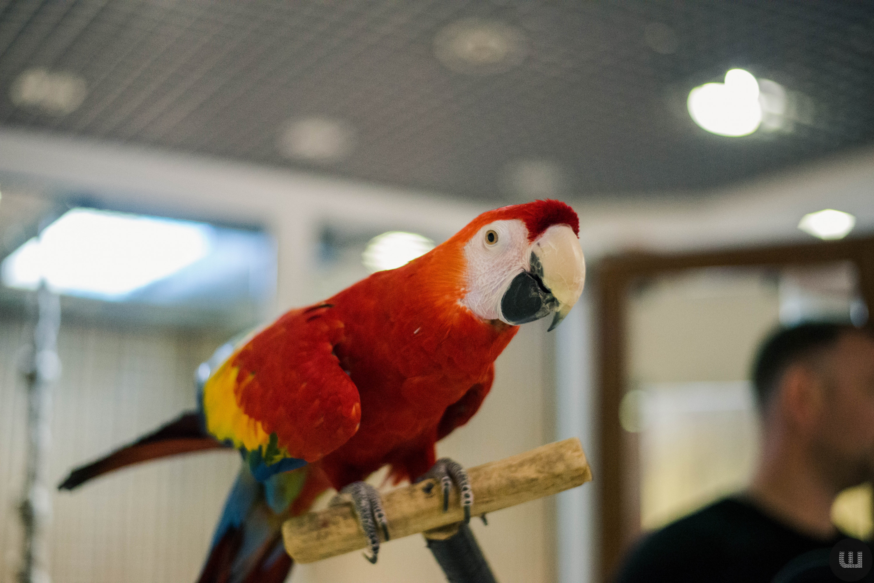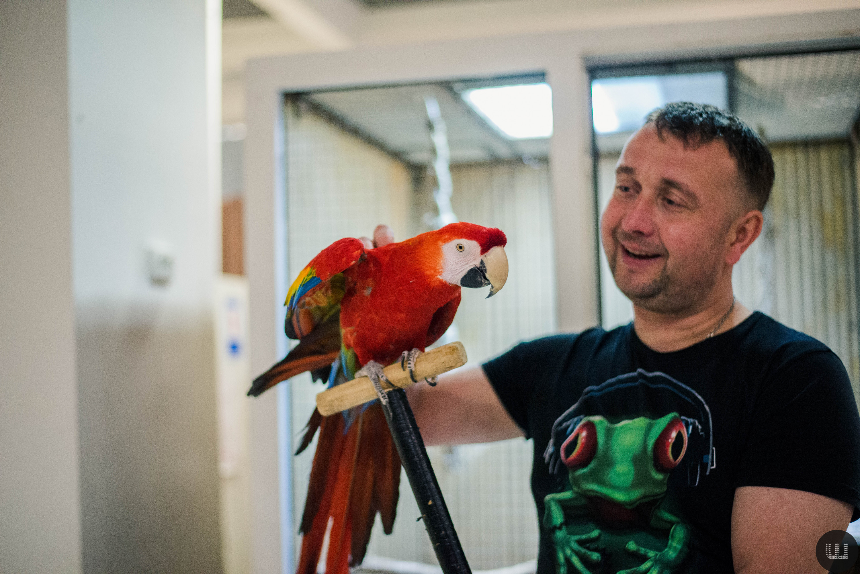 Найактивніший із них – синьо-жовтий Ара. Він танцює та добре говорить. Двічі на тиждень папуги приймають ванну.
