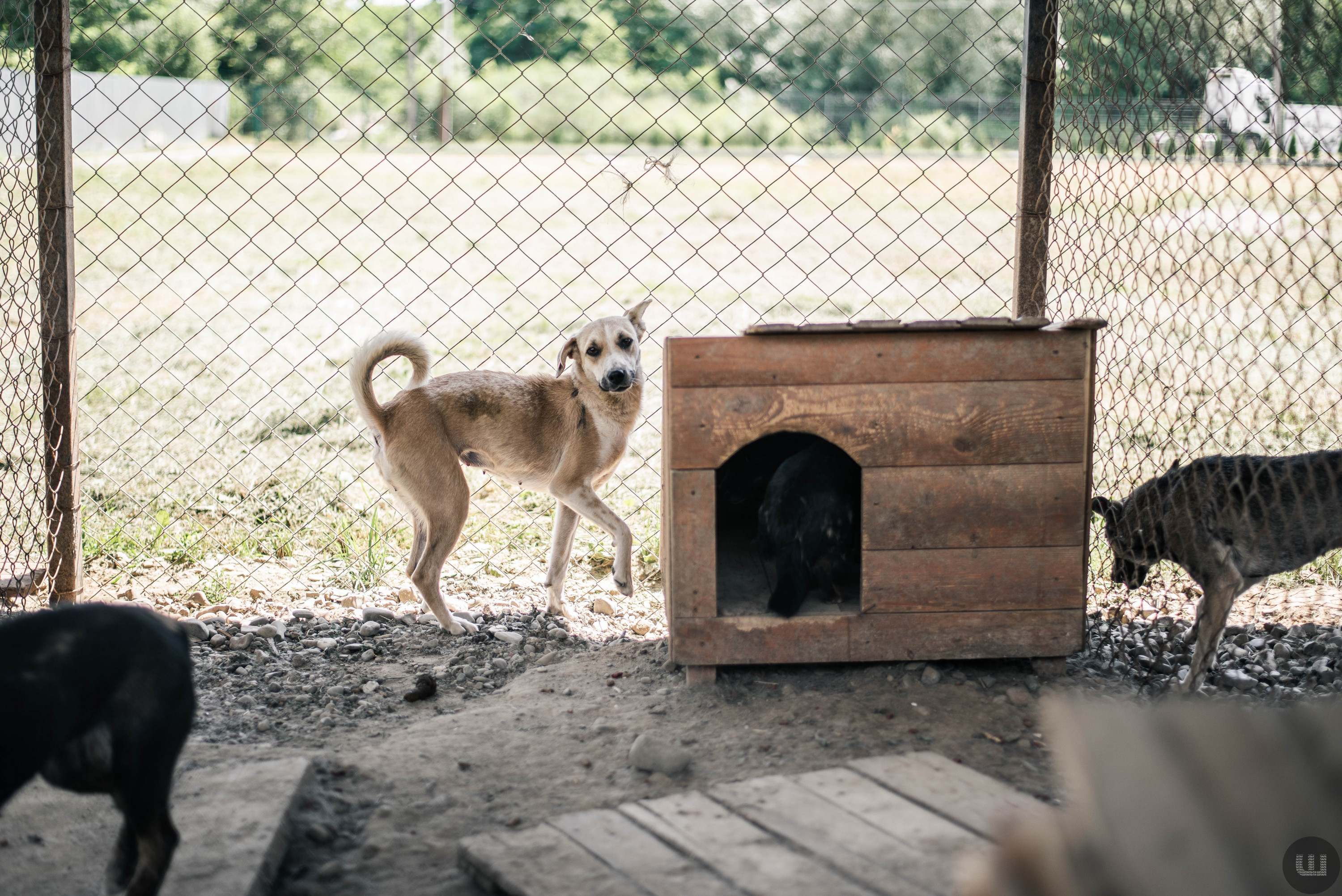 Це – Катя, їй два роки. Вона потрапила в притулок маленькою, з розрізаним горлом. Ймовірно, вона застрягла в колючому дроті чи потрапила в капкан. Тут їй зробили операцію та вилікували. Світленька дівчинка дуже спокійна й тендітна. Доброзичлива до людей та прагне уваги.