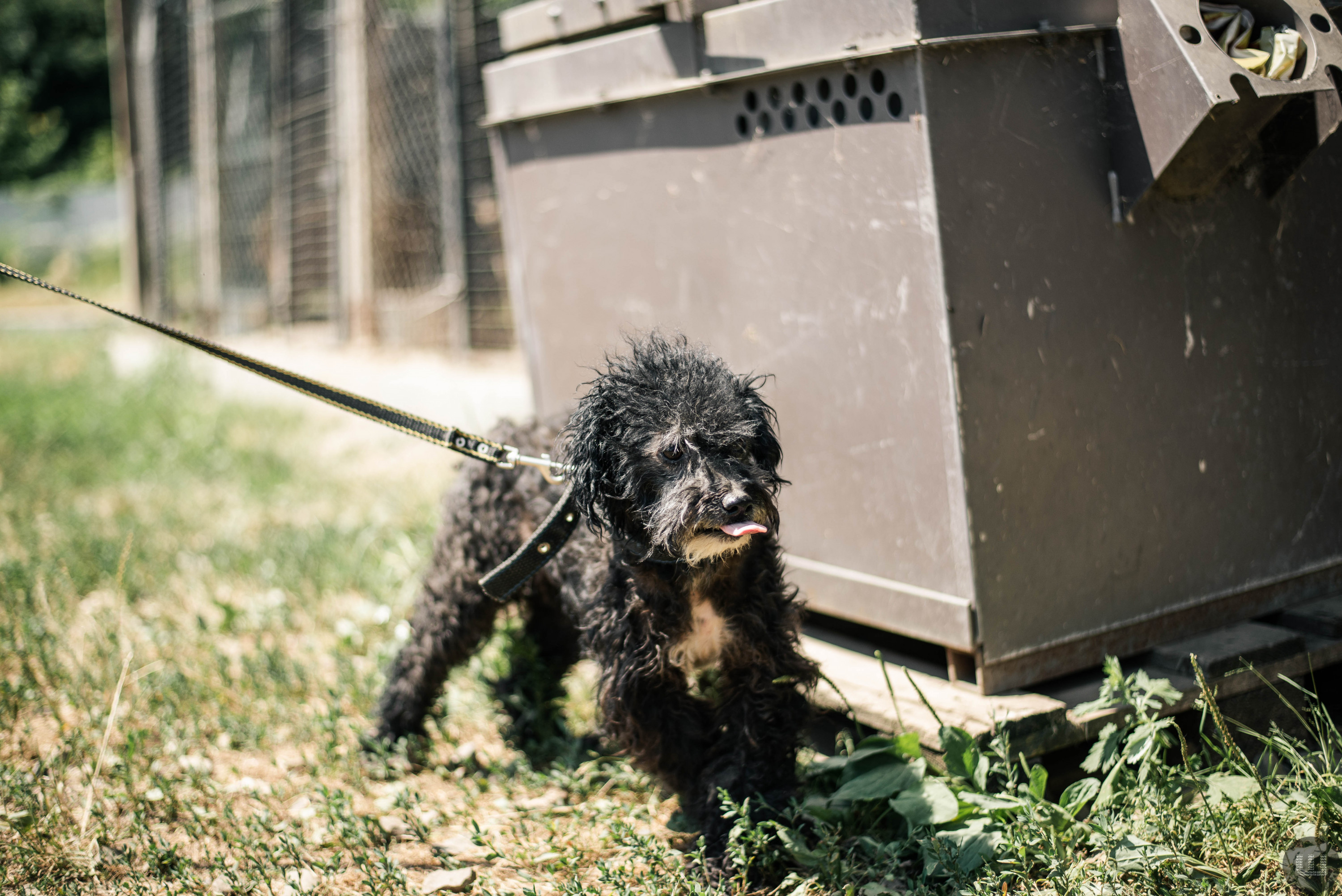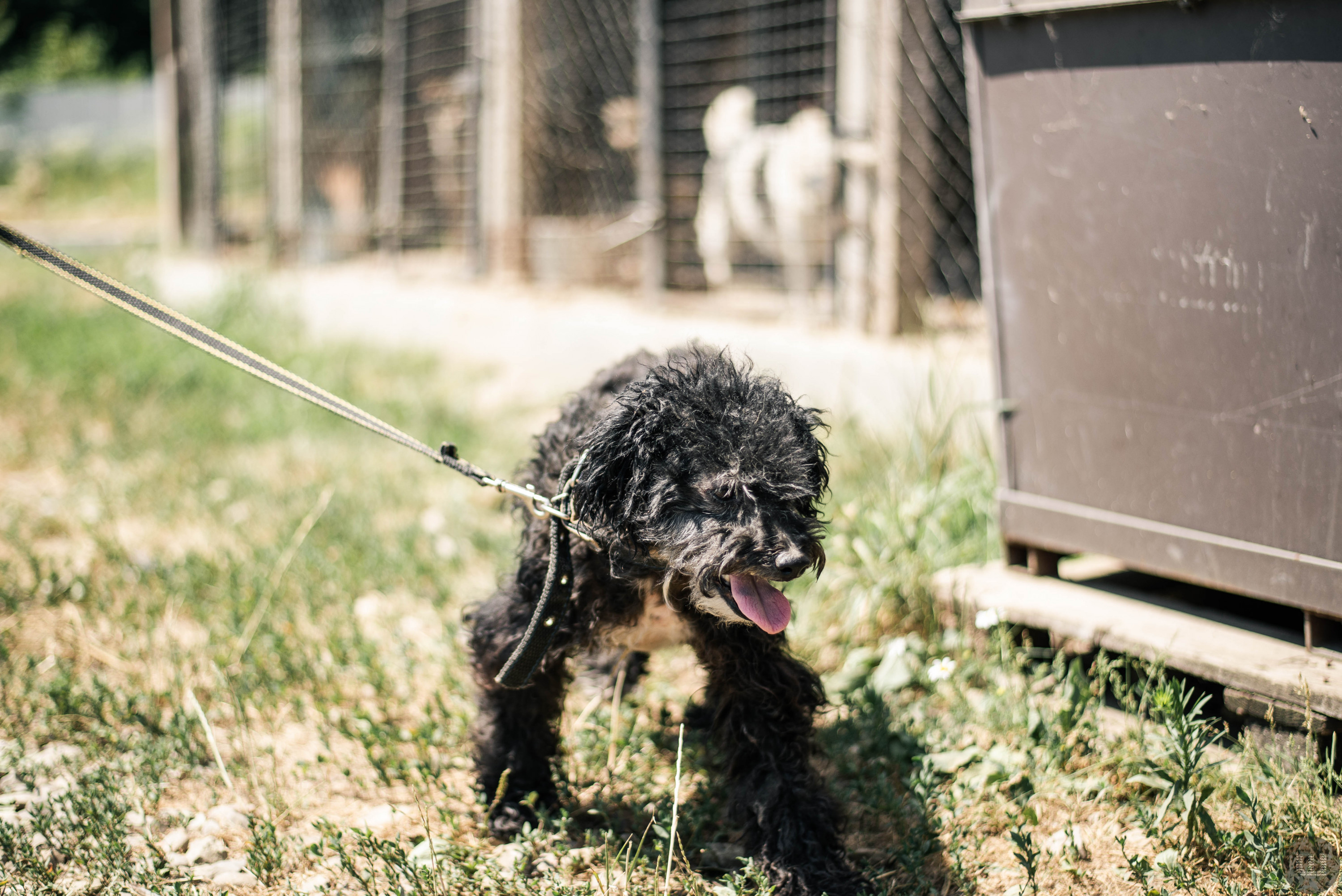 Це – Кудлатик. Йому три-чотири роки. Він ще цуциком потрапив у притулок зі своєю сестрою, та дівчинку вже забрали. Він дуже спокійний і любить гратися. Часом соромиться людей та боїться їх. Також Кудлатик не дуже любить гуляти з повідком, може опиратися. Йому потрібні хороші господарі. Бажано, щоб на подвір’ї не було інших собак.