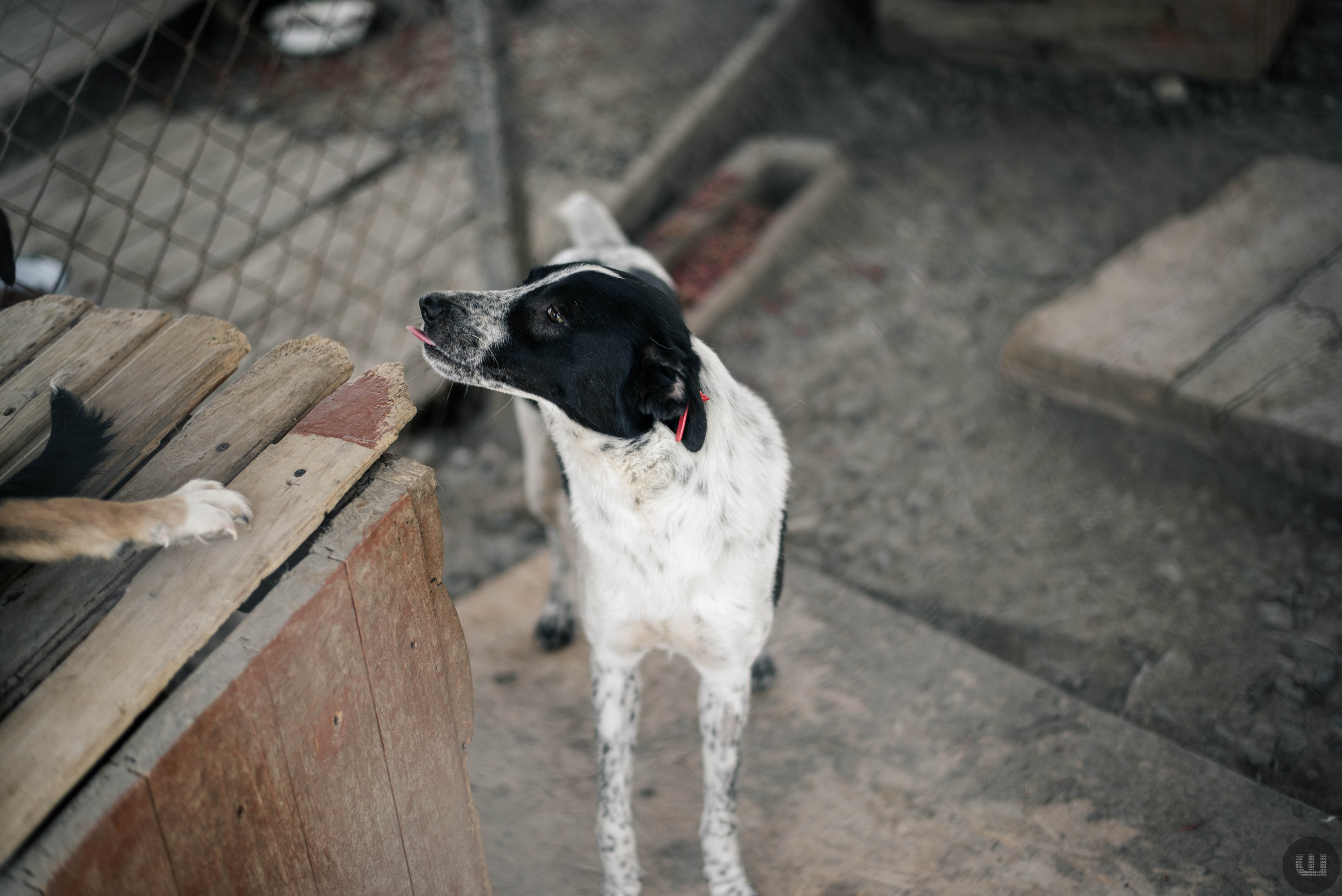 Чорно-білій дівчинці півтора року. Її викинули на вулицю цуценям, і виросла вона тут. Дуже спокійна та боягузлива. Недовірлива до людей, боїться, щоб її не скривдили, та все ж чекає, щоб її погладили. Найбільший страх дівчинки – бути прив’язаною, тож їй потрібне вільне подвір’я. Чудово підійде для родини, в якій є дітки. Вона не агресивна і стане хорошою подругою.