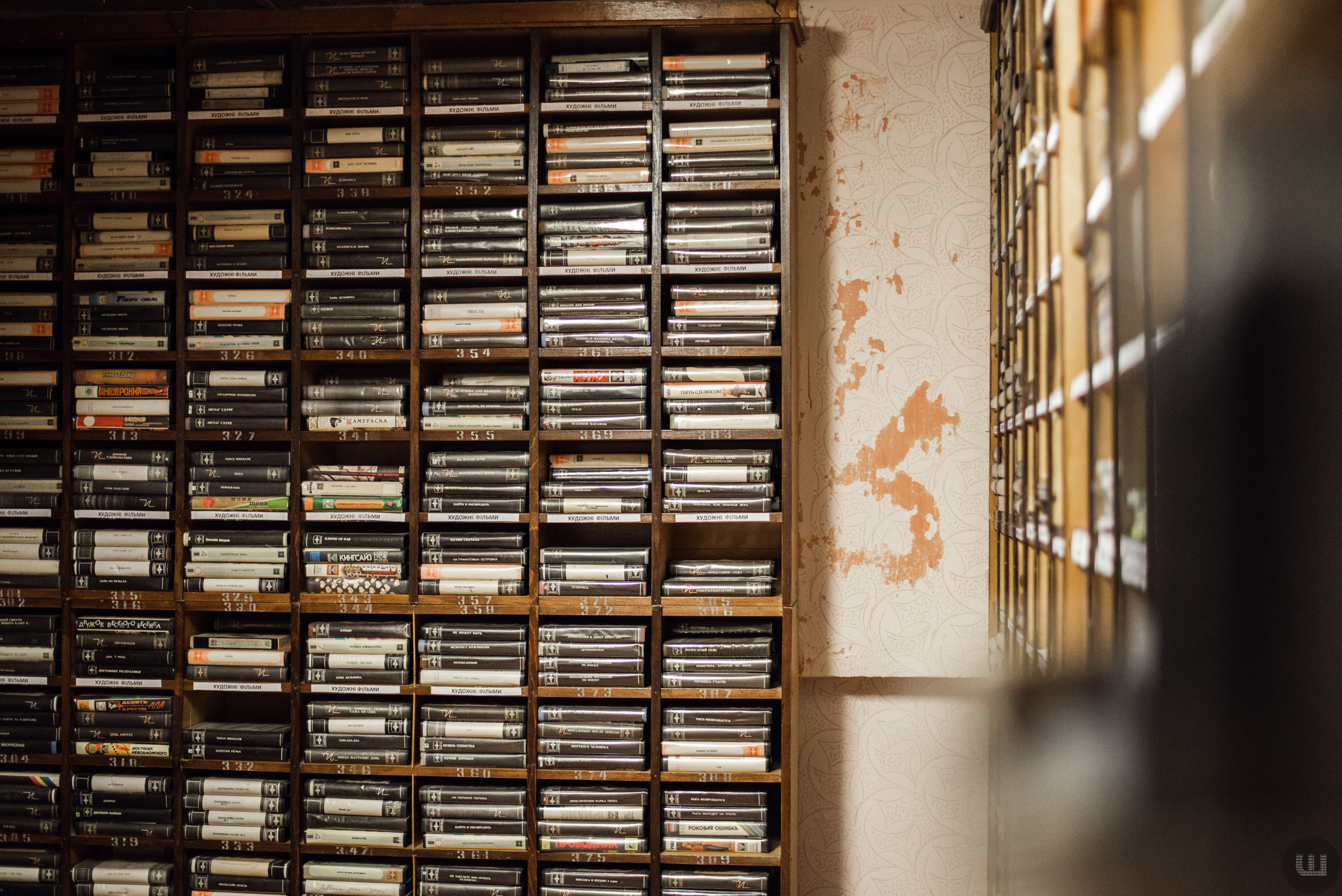 У першій кімнаті фільми збережені в іншому форматі. Це касети і диски. Фільми на плівці зберігають окремо.