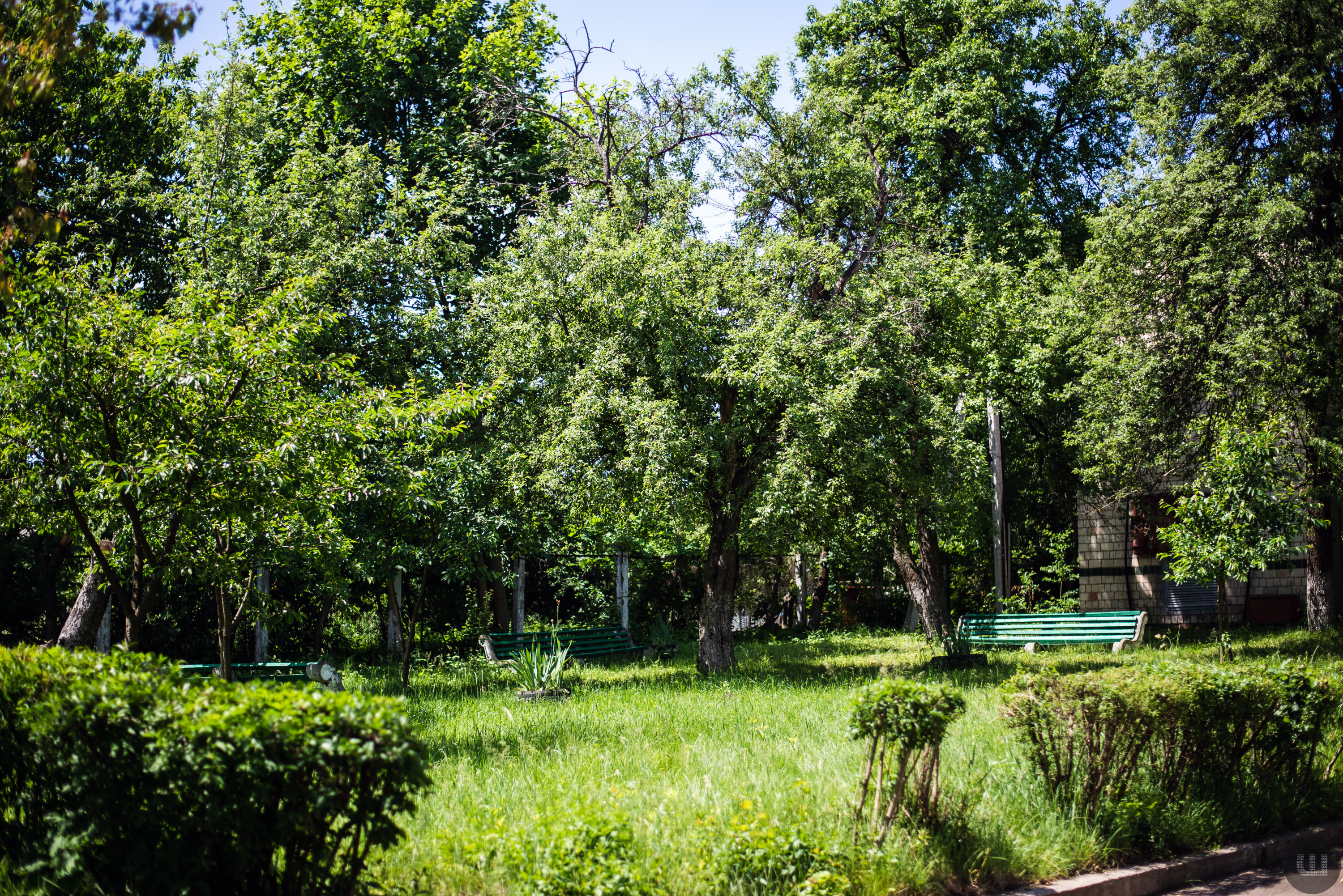 Далі оглядаємо територію кінопрокату. Чималий яблуневий сад посаджений на честь Олександра Довженка у 70-х роках XX століття. Колектив розробляє проект «кінотеатр під відкритим небом» і демонстрацію фільмів у цьому садку. Для цього планують придбати сучасну кіновідеоапаратуру (потужний відеопроектор). А ще заснувати на базі кінопрокату музей кіноапаратури, створити кінофотогуртки та навчати дітей майстерності кінозйомки.
