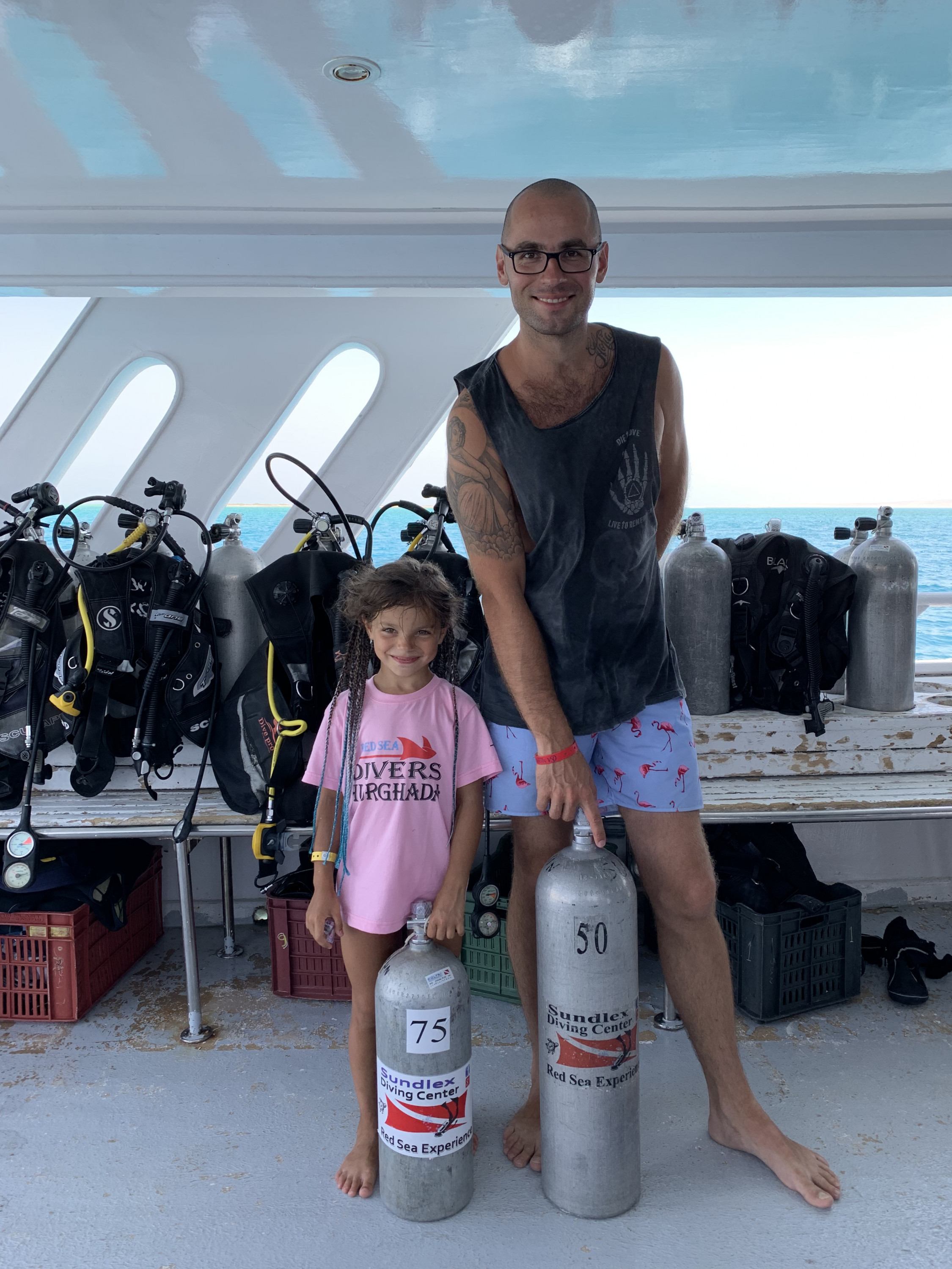 «Я давно хотів познайомити її з красою підводного світу. Показував Глорії відео, розповідав, як відбувається занурення. Дочка професійно займається плаванням і це дуже їй допомогло, адже вона не боїться води. Окрім цього, ми поїхали на море разом із нашою тренеркою з плавання Тетяною Копачук, яка 15 років їздить на дайвінг. З Танею дочка тренується уже три роки».
