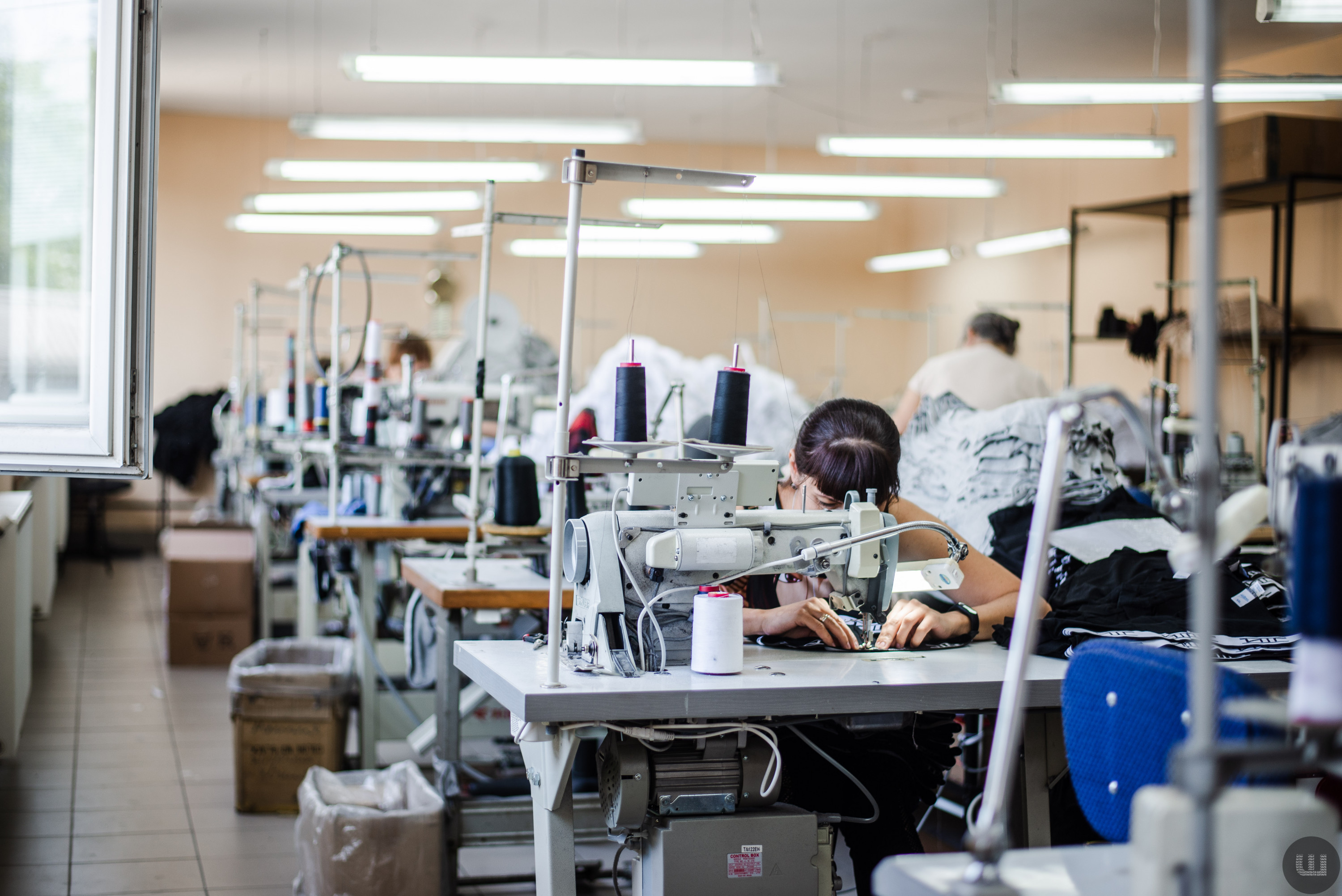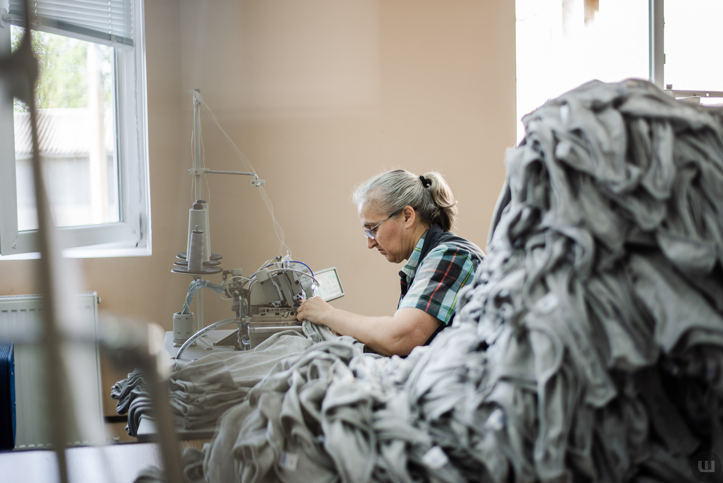 На другому поверсі фабрики два цехи. В одному з них спеціалізуються на пошитті верхньої частини одягу, а в іншому – нижньої частини (брюки, труси…).