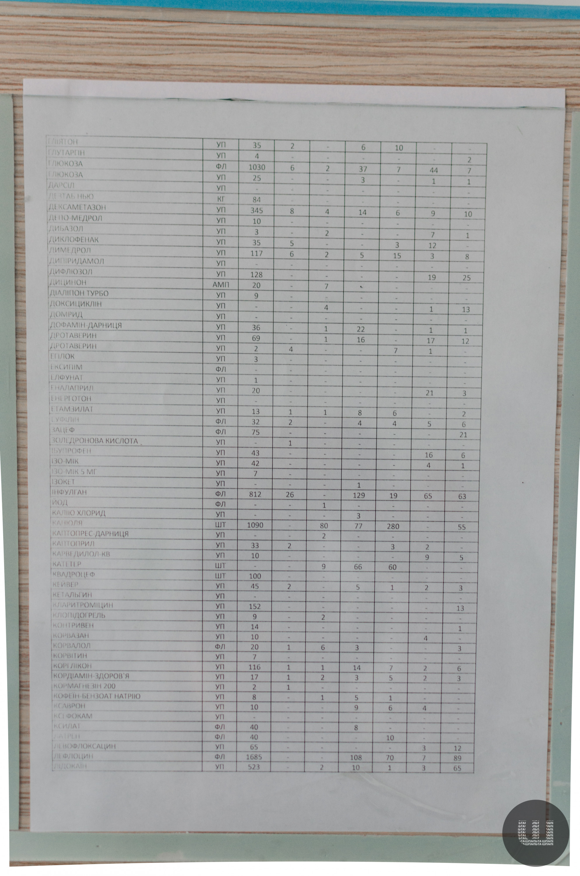 На другому поверсі лікарні на стіні роздруківка із залишком ліків.