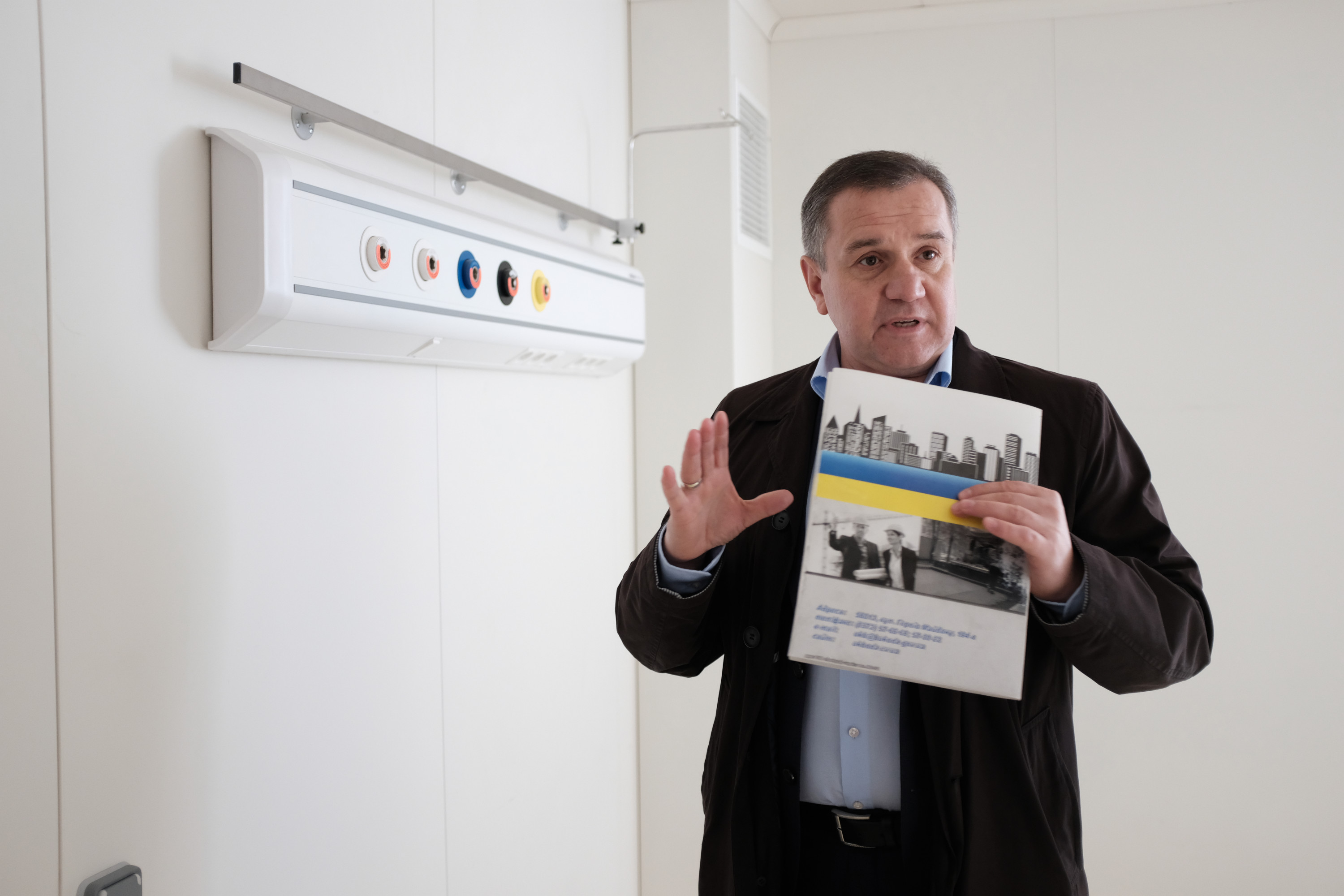 Екскурсію новеньким перинатальним центром нам проводить начальник управління капітального будівництва Чернівецької обласної державної адміністрації Олександр Пуршага.