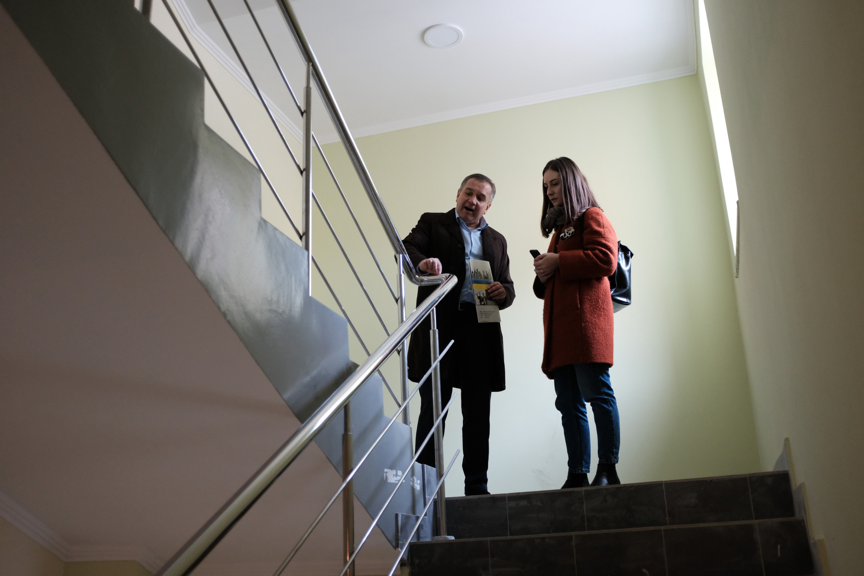 Між поверхами вже зробили сходову клітку, вмонтували перила. Двері на кожному поверсі спеціальні – сталеві, броньовані.