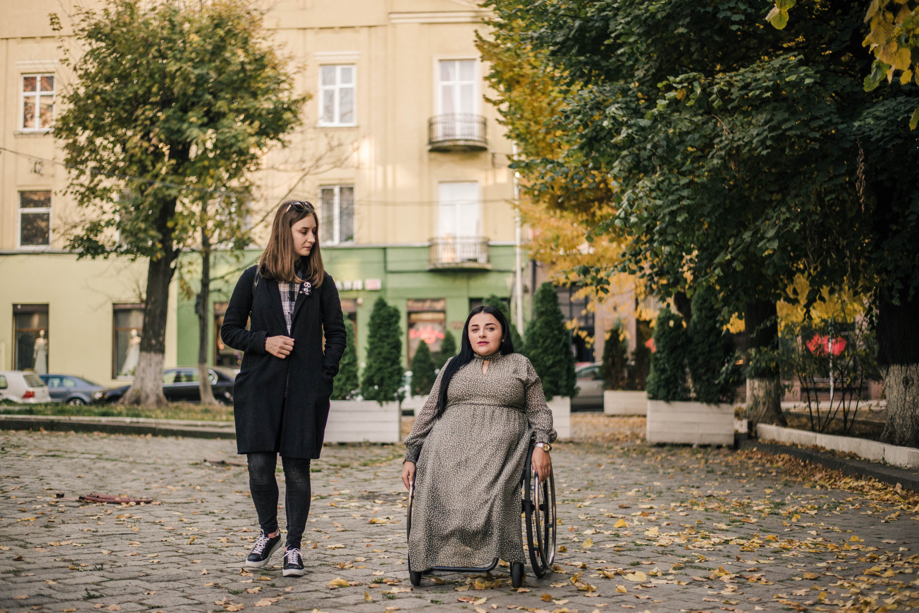 «Ось я хочу піти з подругою попити кави… Де нам це зробити? Всюди сходи. Влітку ще діють майданчики, де можуть бути пандуси. Загалом у Чернівцях можна на пальцях однієї руки порахувати заклади, де мене чекають. Залишаються торгові центри, де є пандуси і ліфти. Навіть центр міста незручний у пересуванні. Переходи не під тим нахилом зроблені, бруківка дуже незручна, побиті дороги – нормально не прогуляєшся. Про кінотеатри я взагалі мовчу, в «Чернівці» доступний вхід лише в малий зал. Добре, хоч театр став доступним, і тепер ми можемо ходити на вистави. Ніхто не думає, як мають жити у цьому місті люди, які пересуваються на візках».