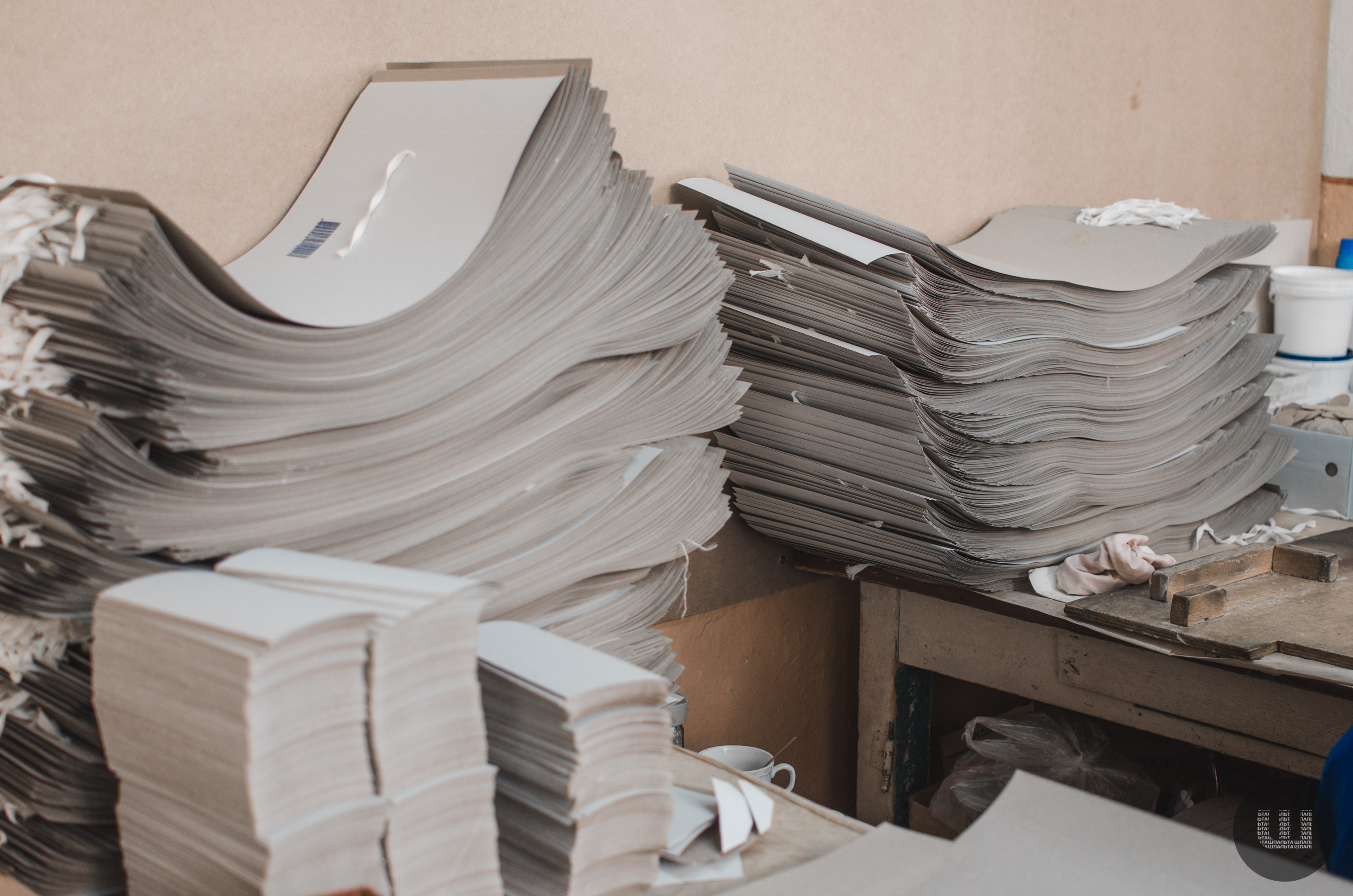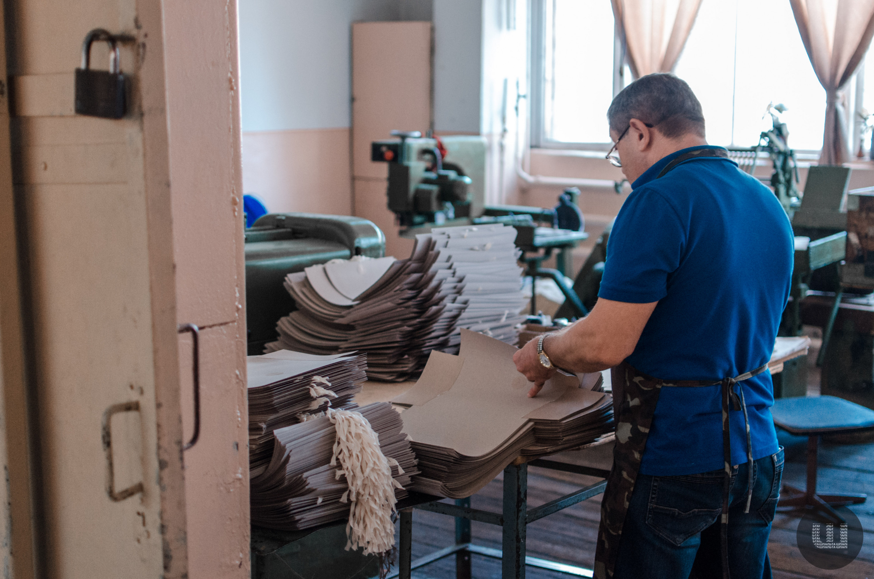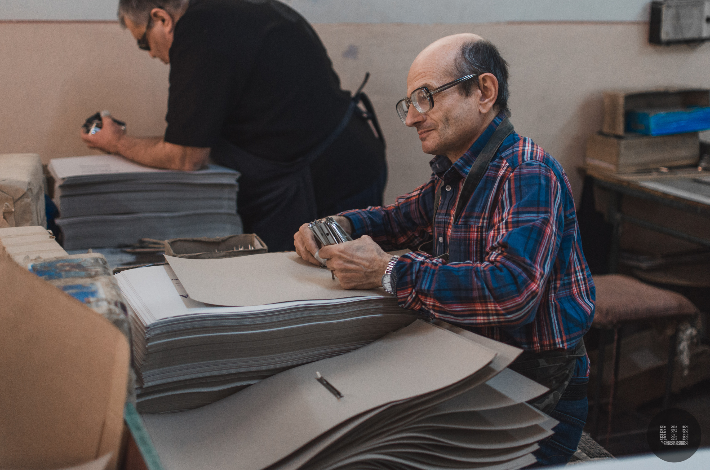 – Знаю весь процес роботи. І друкую, і тасьму ріжу, і клею. Можу робити все, що необхідно. У нас якісна продукція, хороший картон. У Чернівцях ніхто, крім нас, не виготовляє такі папки. Приємно, що нашу роботу цінують, замовляють продукцію. А я тут уже 32 роки! В УТОС прийшла у 19. Спершу працювала обліковицею, бухгалтеркою. Потім повернулася до виробничого процесу. Тут добре, — з усмішкою каже пані Марія.