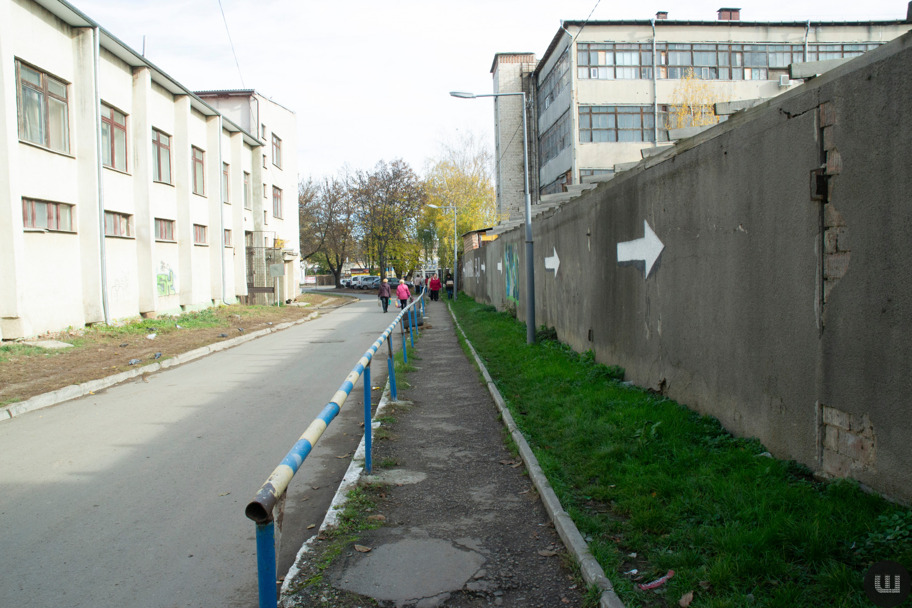 – Подивіться, яка вузька дорога. Забудовник побудував будинок, обгородив, і тепер усі автівки, які проїжджають до своїх помешкань, пролітають поруч з УТОСом. Дві машини тут не можуть розминутися. Собаки розбігаються в один бік, діти — в інший. Огорожу мали б зняти давно. Але вона досі там. Хоча повинен бути проїзд, парковка. Але він хоче ще будувати! Де будувати, як проїзду нема? Що хочуть, те й роблять. Паркуються, перегороджують доріжки.