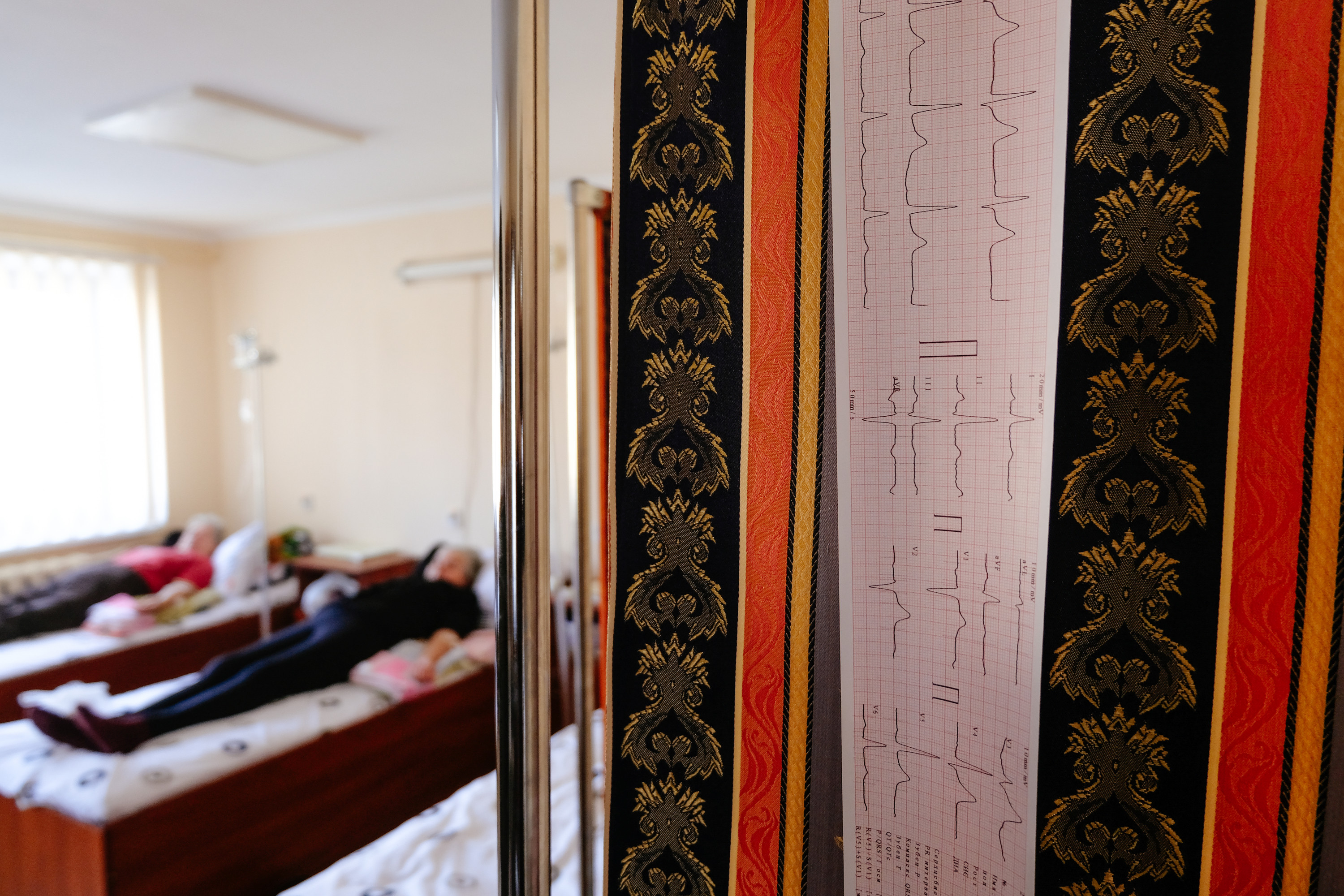 Керівниця підприємства проводить екскурсію амбулаторією. Заходимо у палату денного перебування. Наразі тут є четверо пацієнтів, їм саме ставлять систему.