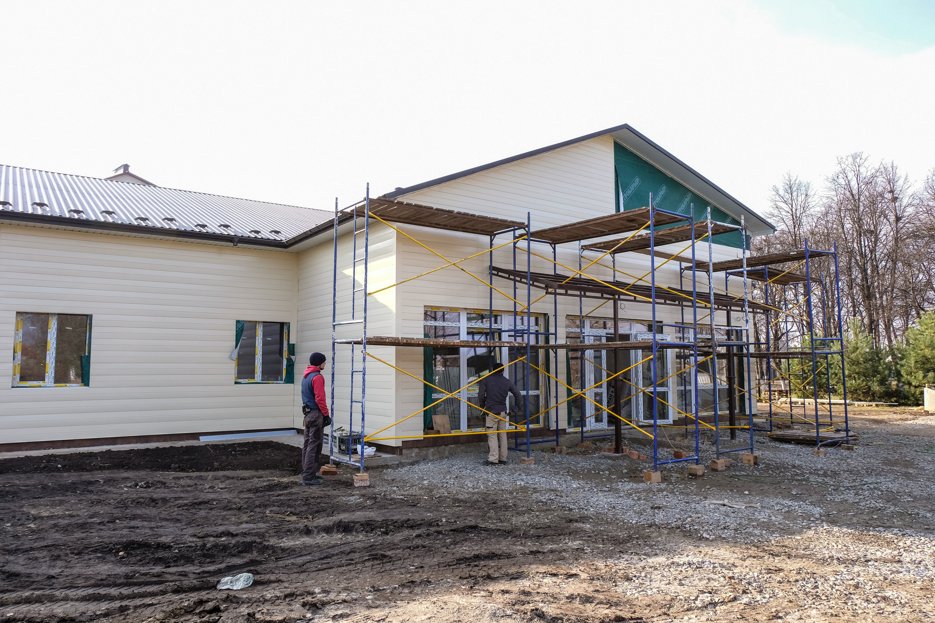 Їдемо до нової амбулаторії, яку будують у Мамаїцях. Будівля вражає об’ємами. Загальна площа забудови — 308 кв. метрів. Згідно з проєктом, тут мають працювати лише чотири сімейні лікарі.