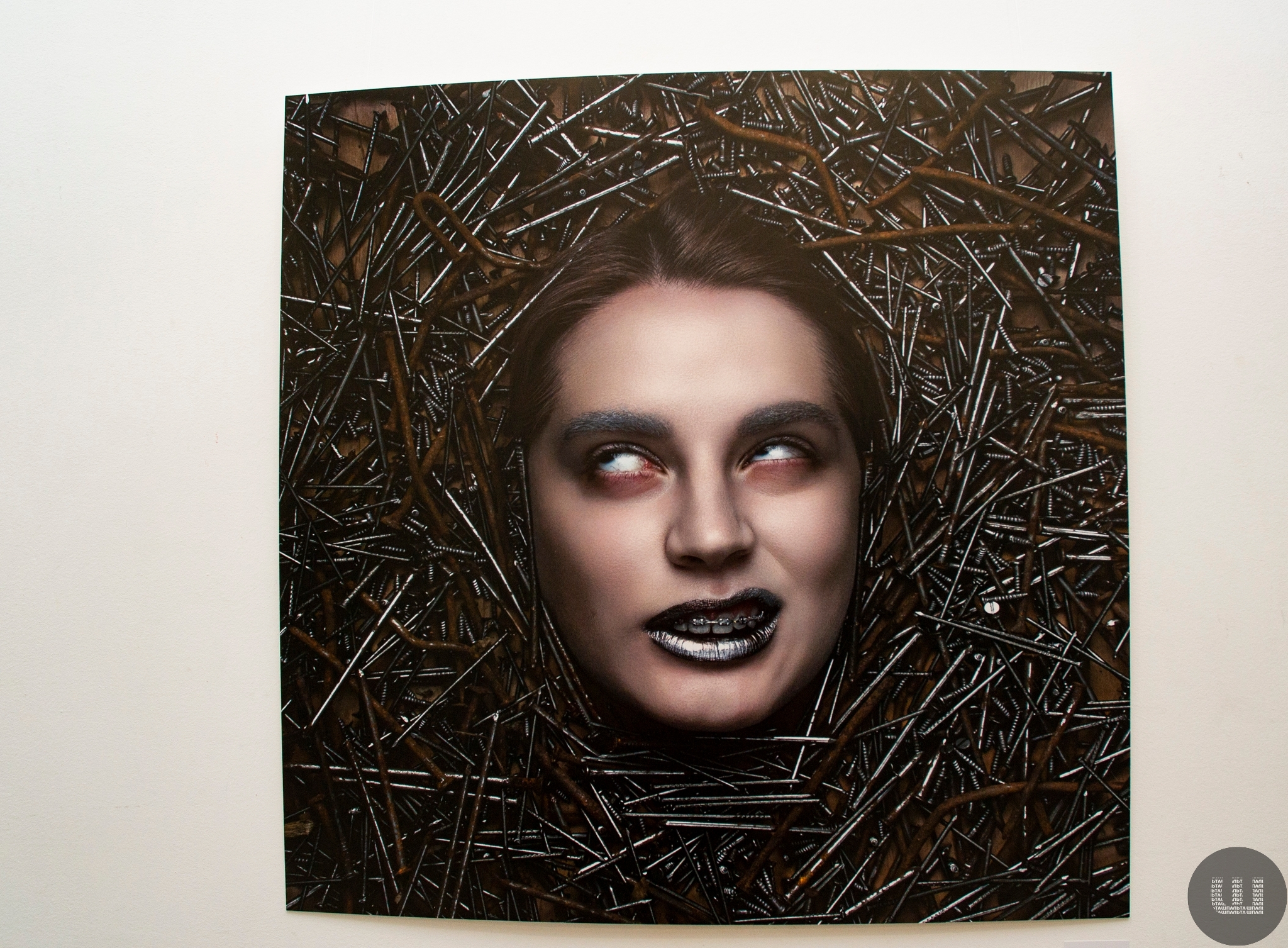 «Я назвав фотовиставку «In», бо моделі на картинах не просто лежать серед предметів, які створюють фон. Вони зливаються з ним, стають частиною композиції. Макіяж створений таким, аби дівчата розчинилися серед речей, розкладених навколо них. Гляньте на картину з цвяхами. Якщо придивитися до деталей, можна побачити не лише нові, а й старі цвяхи. А далі вже додумуйте самі», — розповідає фотограф.