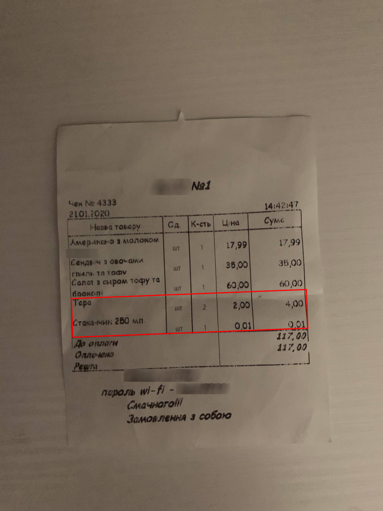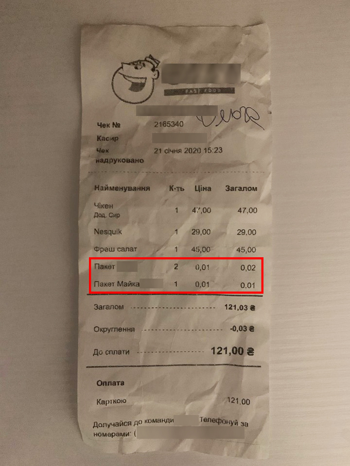 До нашої фотографині, яка ретельно фіксує на камеру мої покупки, виходить адміністраторка закладу. Цікавиться, навіщо фотографуємо і запевняє, що у їхньому закладі всі упаковки одноразові, паперові.