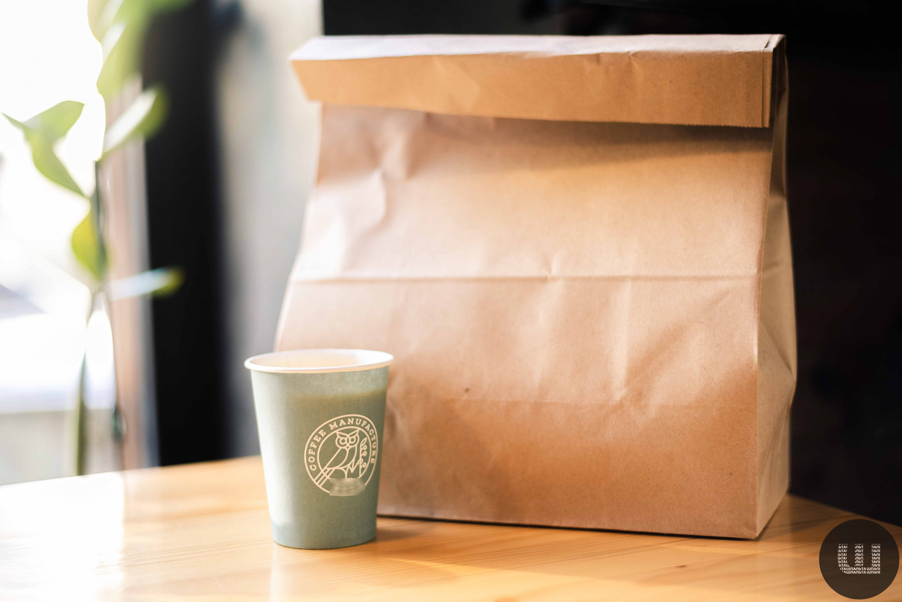 Третя точка, яку ми обрали для експерименту, – кафе біля театру. Тут теж замовляю сандвіч, салат та каву. Прошу упакувати з собою. Через декілька хвилин моє замовлення готове. Мені дають великий паперовий пакет та каву у паперовому стакані.