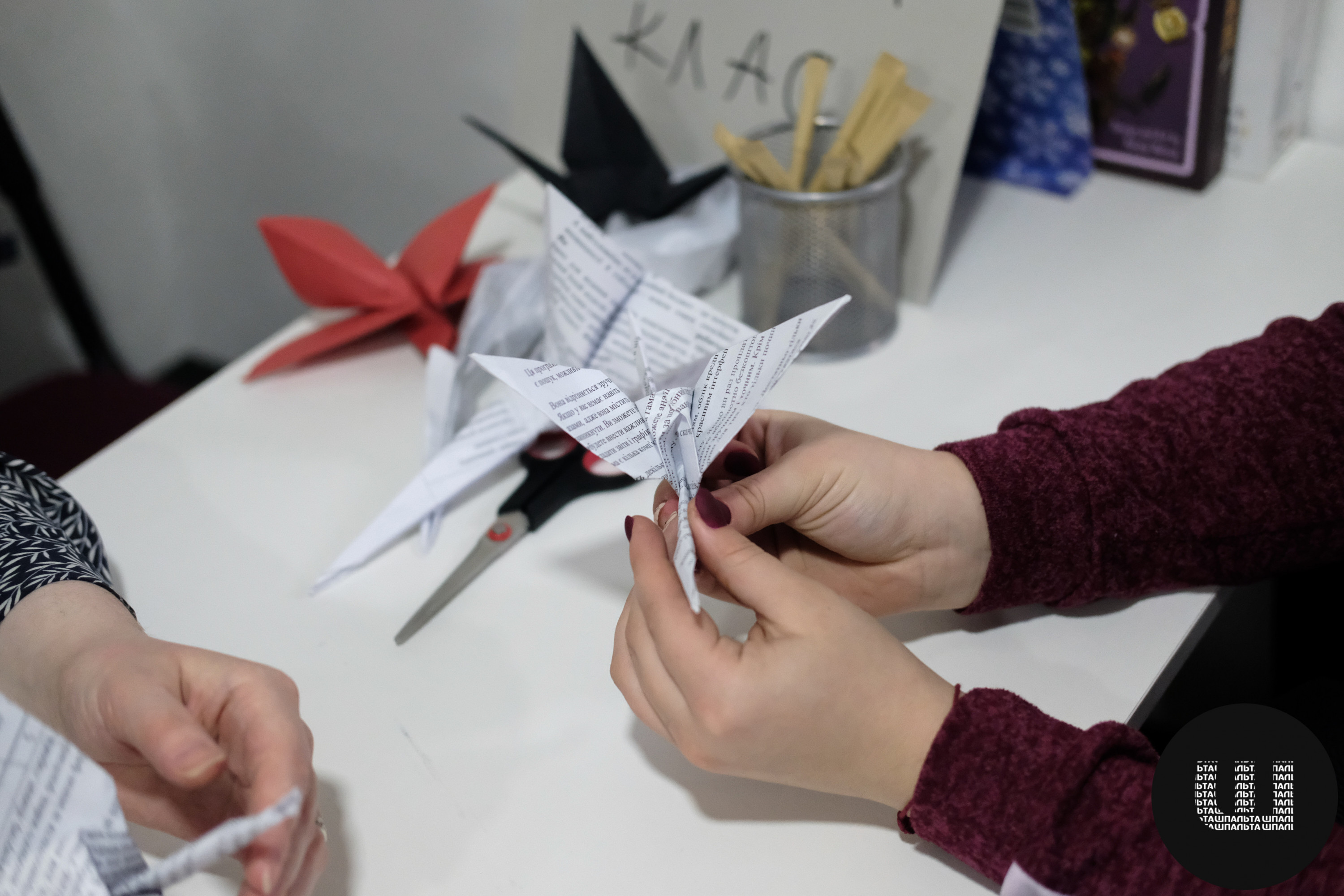 Антоніна Ланова навчала відвідувачів вечірки робити орігамі.