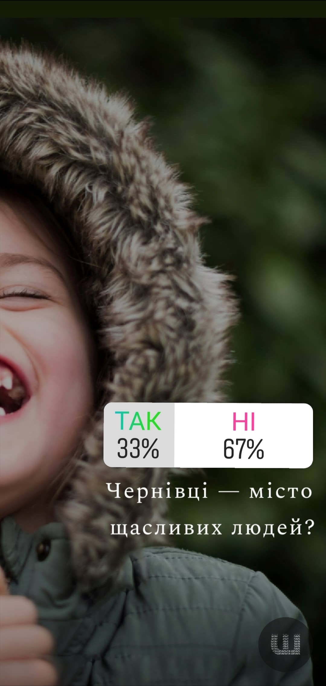 Лише 33% респондентів назвали Чернівці містом щасливих людей, не погодилися з такою гіпотезою 67%.