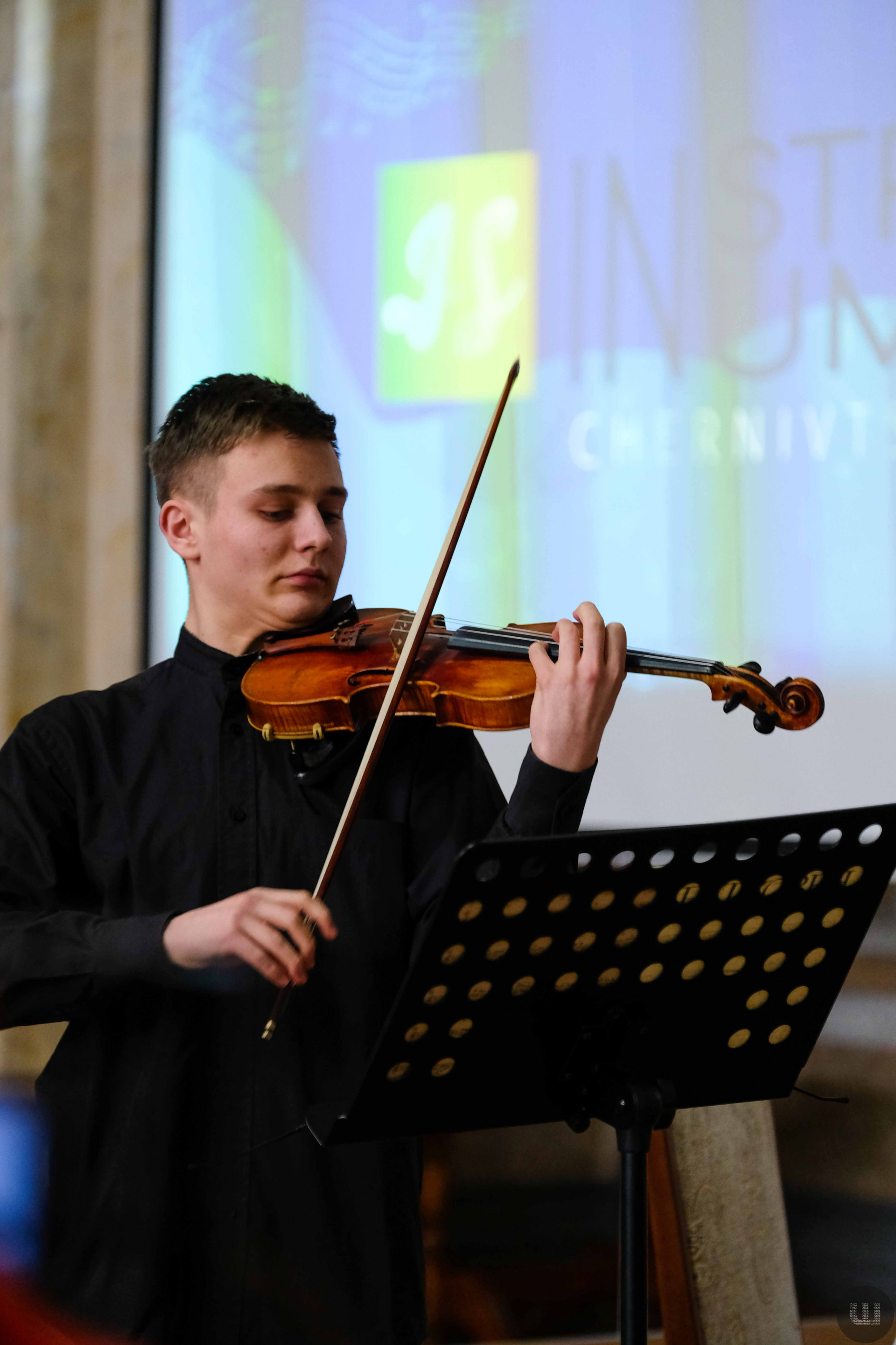 Відкривали фестиваль у Мармуровій залі ЧНУ Леонід Дацюк та Віталій Бобровський, які грали концерт для скрипки та роялю.