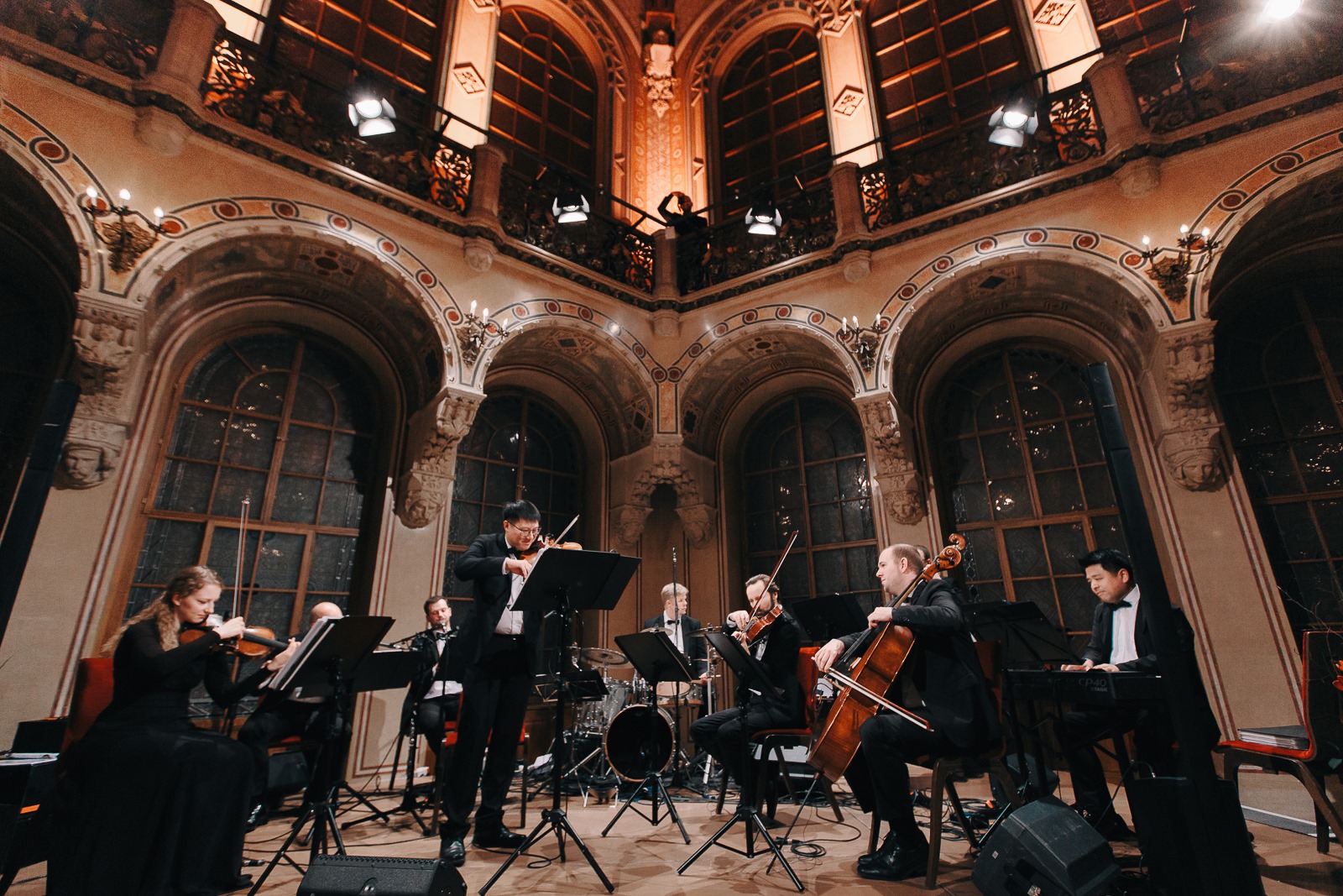 Після їхнього виступу ведучий запрошує всіх на паркет. Люди танцюють, скільки хочуть. В одному залі грає оркестр, тут танцюють полонез, вальс, польку. Тут же грають латино-американську музику. В іншому залі в нас саксафоніст і солістка. Люди мають право вибору, в якому залі танцювати.