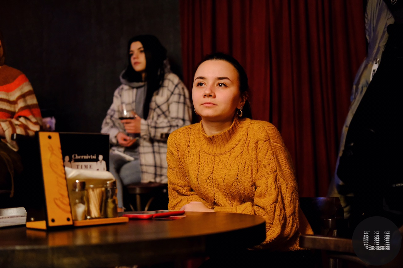 22 лютого у пабі «Time N» відбулася інтерактивна благодійна лекція у рамках проєкту «Великі історії маленького міста». Під час зустрічі досвідом ділилася прессекретарка міжнародної літературної корпорації «Meridian Czernowitz» Лілія Шутяк.