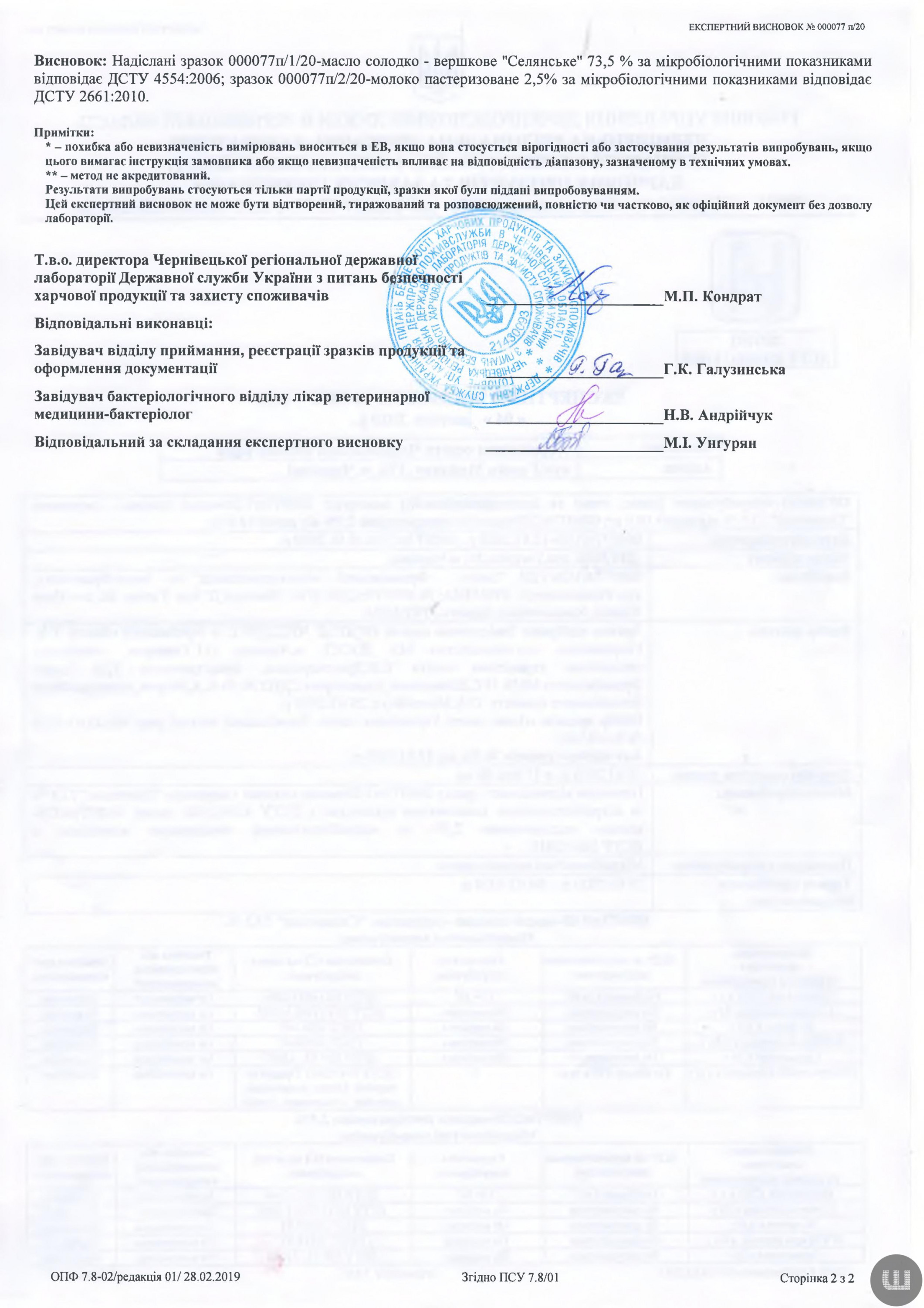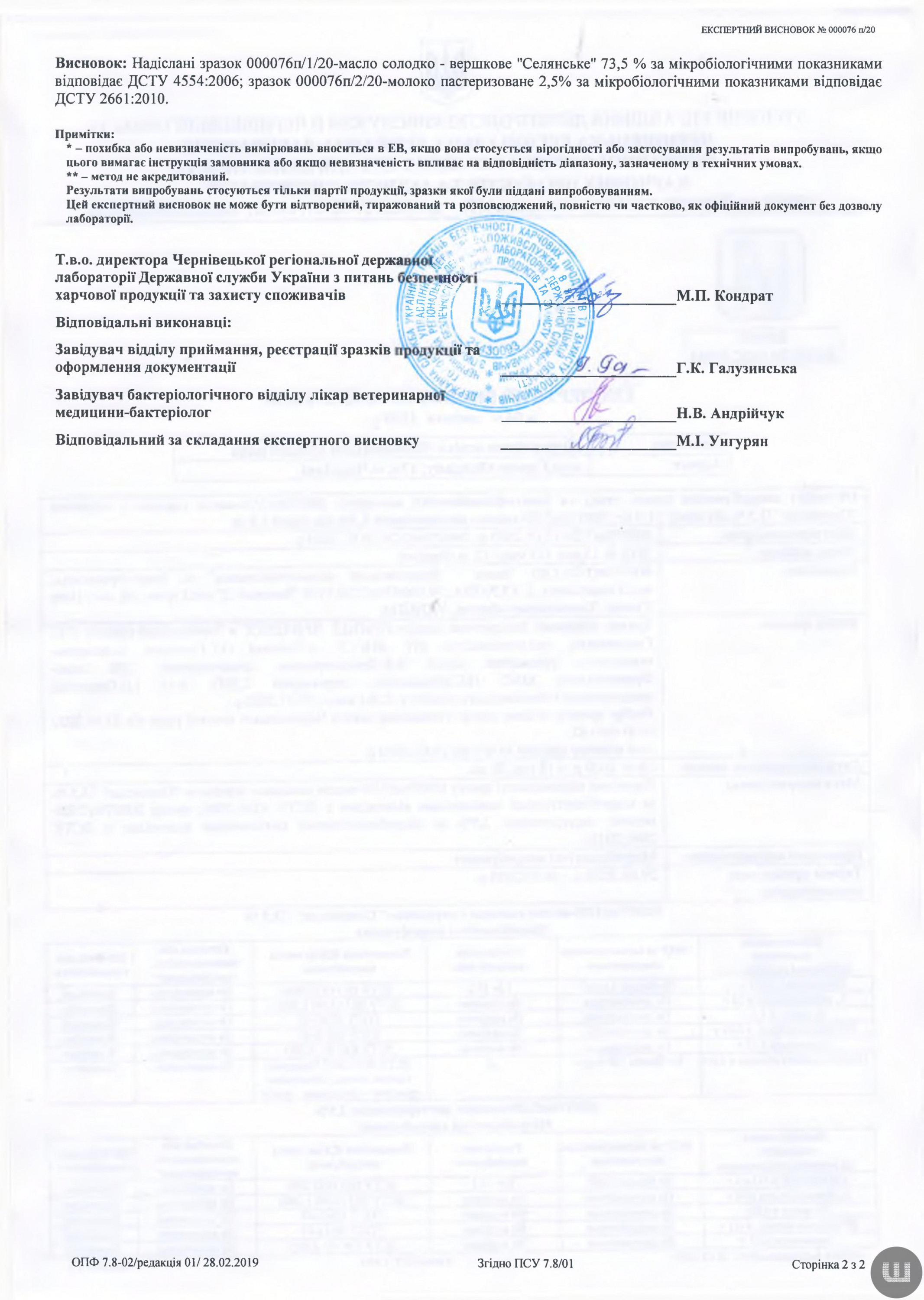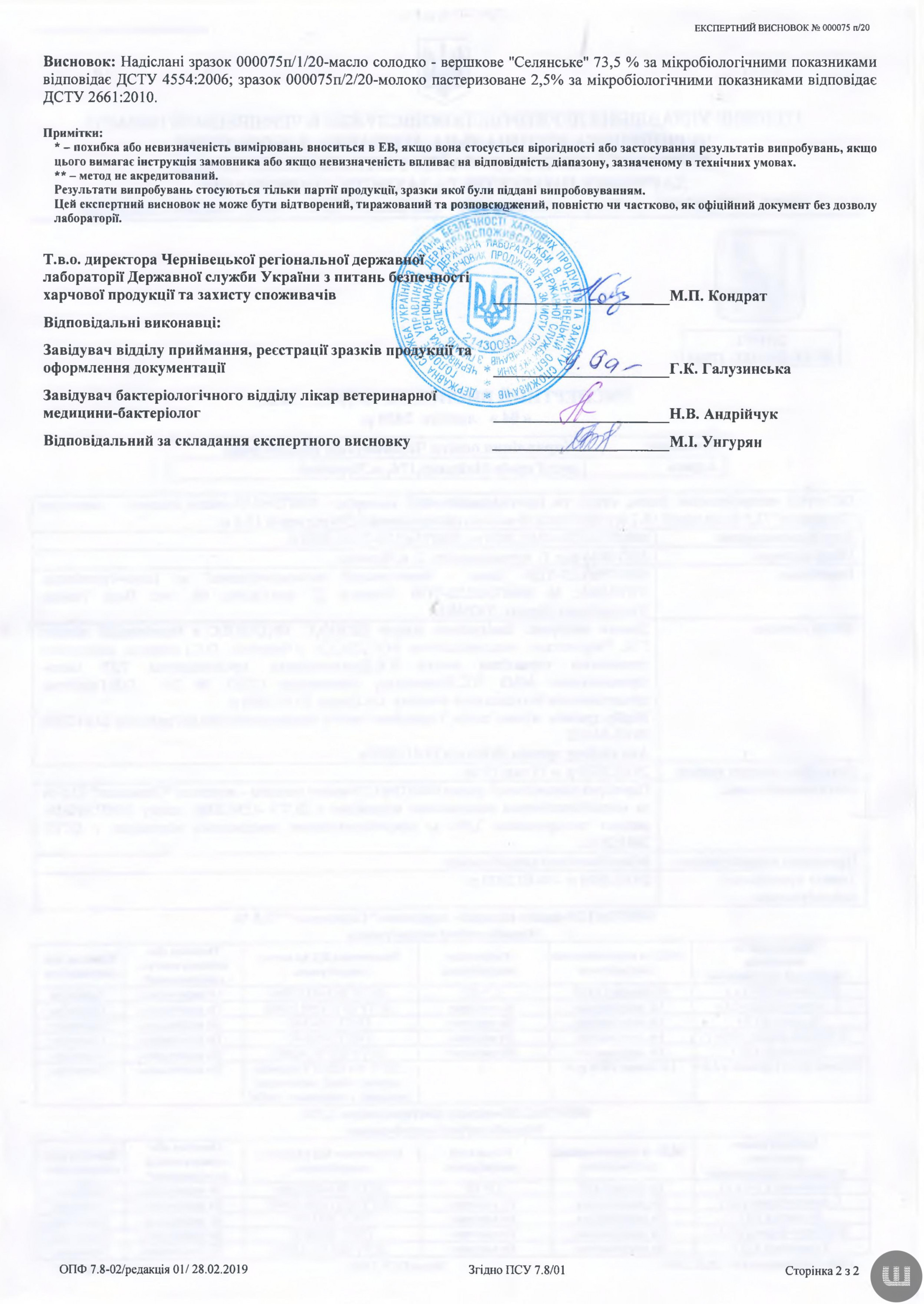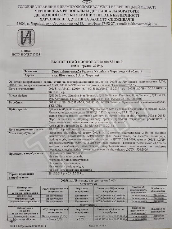 І тут також у зразках молока та сиру знайшли порушення норм ДСТУ. Натомість у маслі «Селянське» відхилень не знайшли. Про це свідчить експертизний висновок Держпродспоживслужби, який оприлюднив на своїй сторінці Олег Тудан у фейсбуку.